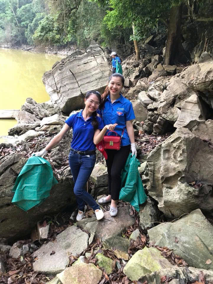 Ảnh 3. Cựu sinh viên Hoàng Thị Hoá và đồng nghiệp tham gia các hoạt động cộng đồng bảo vệ môi trường