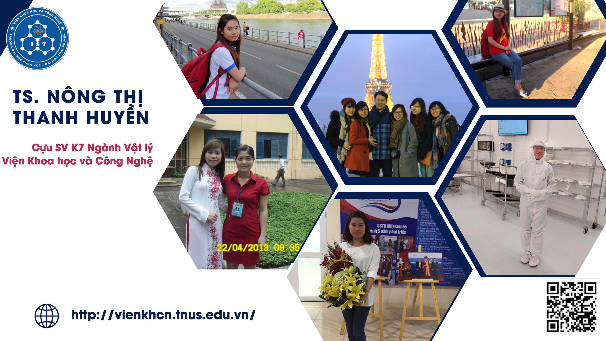 TS. Nông Thị Thanh Huyền – cựu sinh viên ngành Vật Lý K7, sinh ra và lớn lên trên mảnh đất Võ Nhai, Thái Nguyên, Huyền đã trải qua một hành trình không chỉ thú vị mà còn đầy thử thách, từ những ngày đầu là cô học sinh trường làng cho đến khi trở thành một kỹ sư công nghệ Bán dẫn quốc tế. Những năm tháng học tập tại Trường ĐHKH đã trang bị cho chị kiến thức vững chắc và kỹ năng cần thiết để bước vào thế giới nghiên cứu khoa học. Sau khi tốt nghiệp, Huyền tiếp tục hành trình học thuật của mình tại Cộng hòa Pháp, nơi chị hoàn thành chương trình Tiến sĩ chuyên ngành Khoa học Vật liệu và Công nghệ Nano. Hiện nay, TS. Nông Thị Thanh Huyền đang làm việc tại Công ty Imec ở Leuven, Vương Quốc Bỉ, trong vai trò Kỹ sư Công nghệ Bán dẫn. Với mức lương 3,500 USD, chị không chỉ khẳng định được giá trị của bản thân mà còn góp phần vào những nghiên cứu tiên tiến trong lĩnh vực công nghệ. Huyền chia sẻ: “Mỗi bước đi trong hành trình của tôi bắt đầu từ Đại học Khoa học đến nay đều mang theo những bài học quý giá, và tôi luôn cảm thấy tự hào về những gì mình đã đạt được.”
