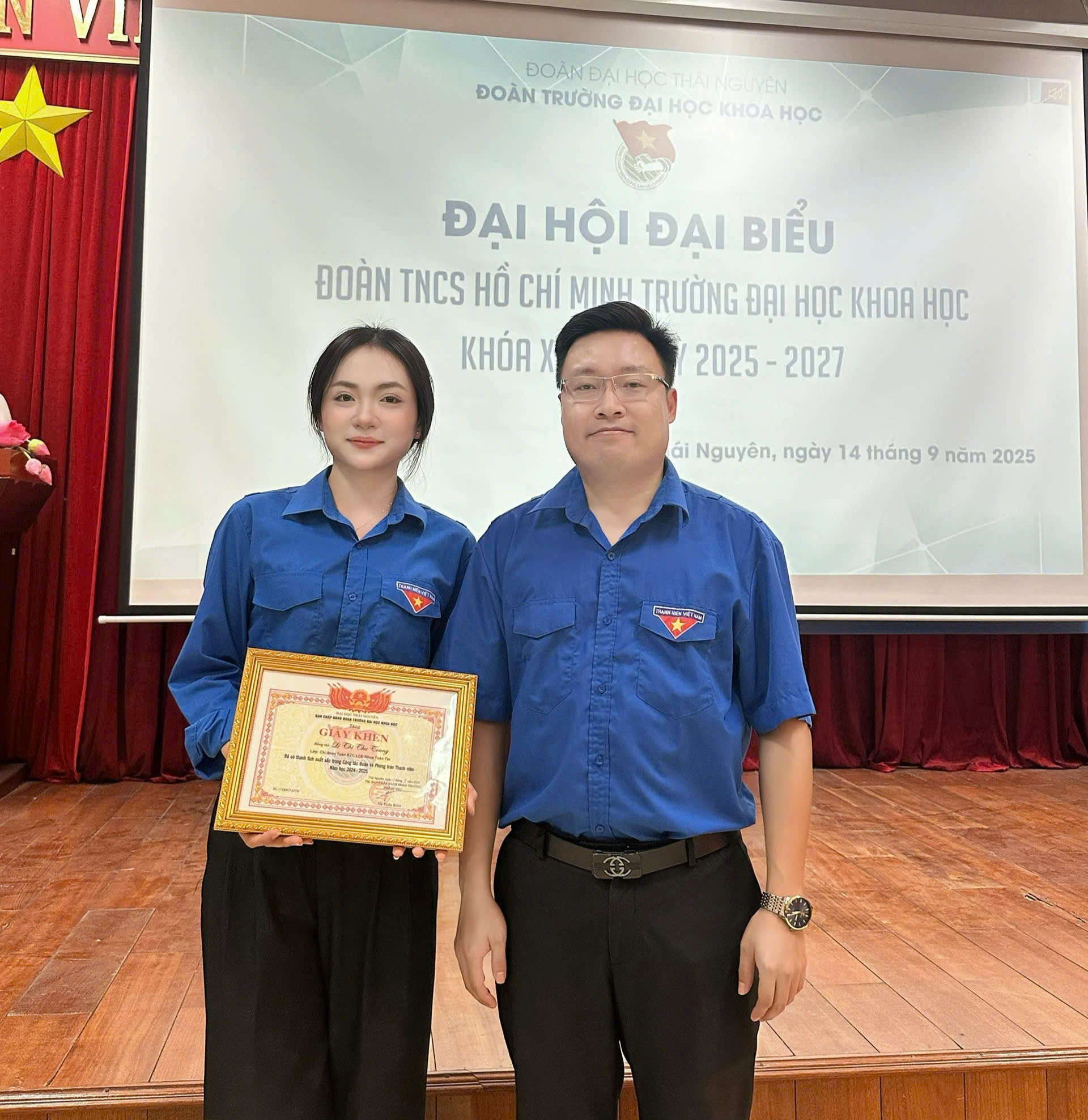 Thu Trang nhận Giấy khen của BCH Đoàn Trường Trường ĐHKH năm 2025
