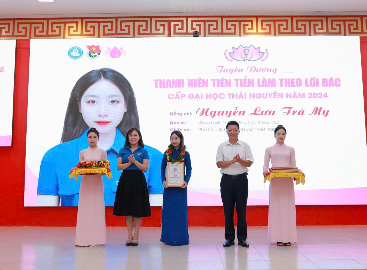 Ảnh 2: Trà My nhận danh hiệu "Thanh niên tiên tiến làm theo lời Bác" cấp Đại học Thái Nguyên năm 2024