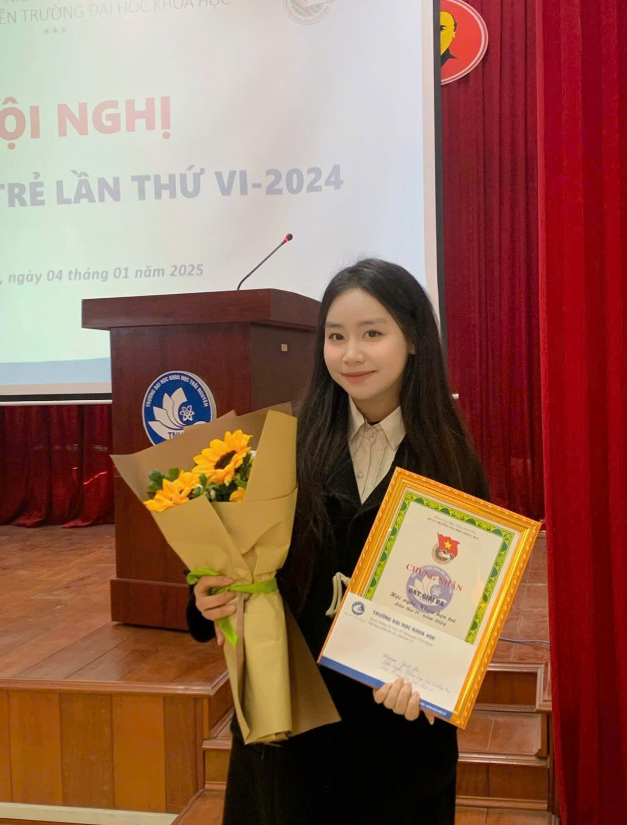 Ảnh 1: Trà My xuất sắc đạt Giải Ba tại Hội nghị Khoa học Trẻ lần thứ VI năm 2024, do Trường ĐHKH tổ chức