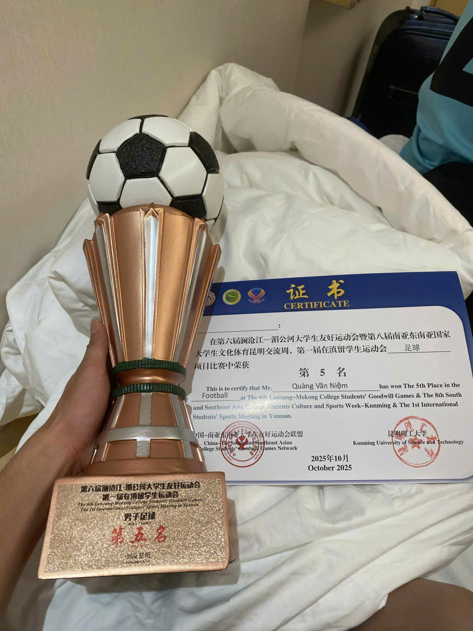 Không chỉ là một cầu thủ tài năng, Quàng Văn Niệm còn là một trong những đại diện sinh viên Việt Nam có mặt tại Tuần lễ Thể thao và Văn hóa Côn Minh, sự kiện quốc tế quy tụ đông đảo sinh viên các nước Nam Á và Đông Nam Á. Sự hiện diện của Niệm cùng đoàn thể thao TNUS không chỉ khẳng định năng lực thể thao của sinh viên Nhà trường, mà còn góp phần quảng bá hình ảnh tuổi trẻ Việt Nam năng động, thân thiện, tự tin hội nhập trong môi trường quốc tế.