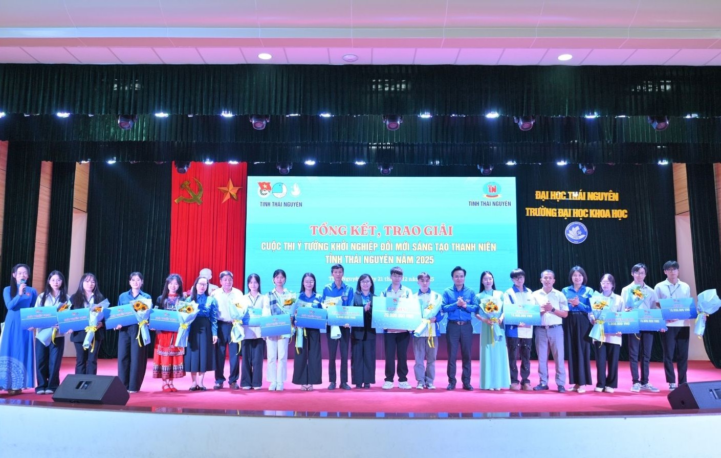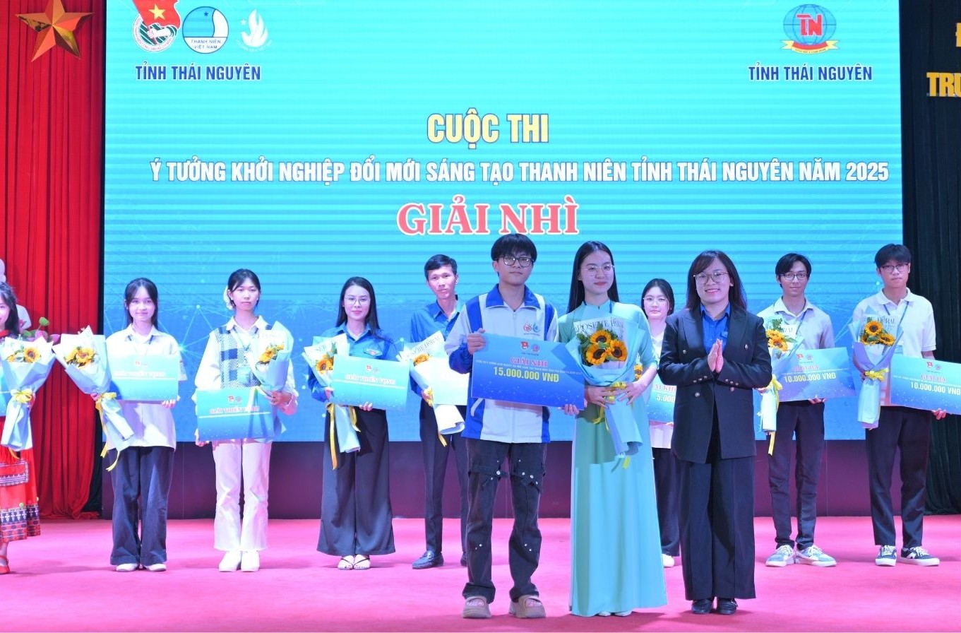 Buổi chiều cùng ngày, chương trình Tổng kết và Trao giải Cuộc thi “Ý tưởng khởi nghiệp đổi mới sáng tạo thanh niên tỉnh Thái Nguyên năm 2025” đã được tổ chức. Vượt qua nhiều dự án tiềm năng, nhóm sinh viên Trường Đại học Khoa học gồm Dương Phương Thảo và Long Vũ Hoàng (lớp Báo chí K21, Khoa Báo chí – Truyền thông) đã xuất sắc giành Giải Nhì với dự án “Chú mèo đi dép” – phát triển kênh podcast khoa giáo – giải trí dành cho thiếu nhi, trị giá 15.000.000 đồng.
