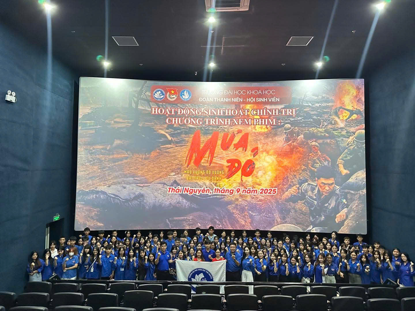 Cũng với mục đích giúp vun đắp, bồi dưỡng lý tưởng cách mạng và lòng yêu nước cho sinh viên, chiều ngày 23/9/2025 Khoa Khoa học Xã hội và Nhân văn cũng đã tổ chức cho sinh viên các khóa trong Khoa xem phim Mưa đỏ. Buổi chiếu phim thu hút sự tham gia của hàng trăm sinh viên các khóa từ năm nhất đến năm tư.