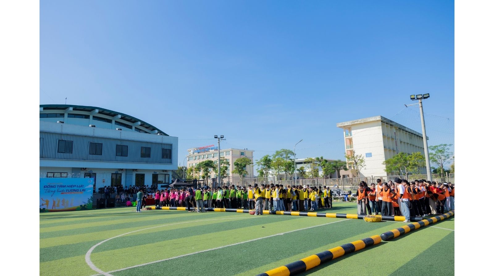 Tiếp theo chương trình là chuỗi trò chơi vô cùng hấp dẫn. Với sự dẫn dắt chuyên nghiệp của các thành viên của Vietpower, các tân sinh viên khoá 23 được chia thành 4 đội thi đấu và tham gia chuỗi trò chơi hấp dẫn. Mỗi thử thách đòi hỏi sự nhanh nhẹn, phối hợp ăn ý và chiến lược đồng đội. Từng vòng chơi không chỉ mang lại tiếng cười mà còn khơi dậy tinh thần đoàn kết, khả năng làm việc nhóm – yếu tố cốt lõi của người học ngành du lịch. Không khí trên sân cỏ bùng nổ bởi tiếng reo hò, cổ vũ và sự quyết tâm vượt qua giới hạn của từng thành viên.