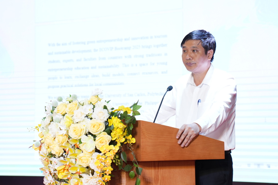 Phát biểu tại chương trình, PGS.TS Nguyễn Văn Đăng, Bí thư Đảng ủy, Hiệu trưởng Trường Đại học Khoa học nhấn mạnh: Trại hè sinh viên khởi nghiệp ECOViP 2025 là nơi quy tụ những ý tưởng đổi mới sáng tạo, kết nối tri thức liên ngành và liên văn hóa, từ đó tạo động lực thúc đẩy phát triển du lịch bền vững và nâng cao năng lực khởi nghiệp cho sinh viên. Thầy cũng khẳng định, Trường Đại học Khoa học luôn quan tâm đến các hoạt động khởi nghiệp, hội nhập quốc tế, đặc biệt là việc triển khai và tham gia các dự án quốc tế trong lĩnh vực khởi nghiệp và đổi mới sáng tạo.