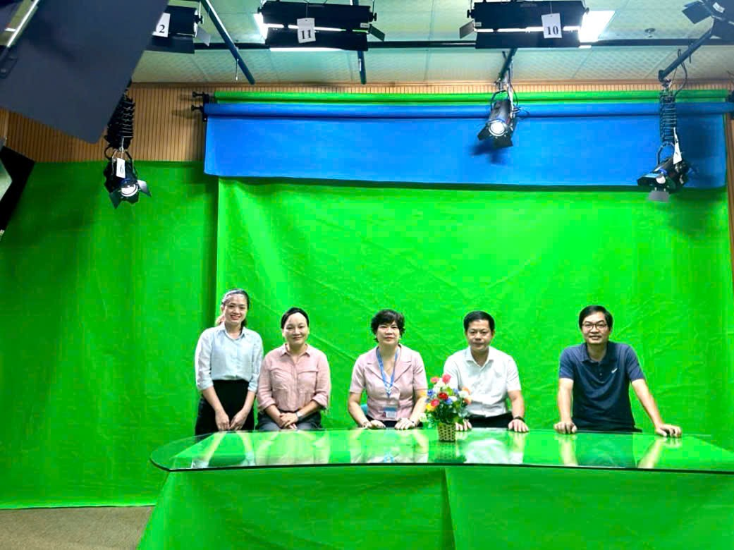 Đoàn chụp ảnh lưu niệm tại Phòng sản xuất học liệu Elearning