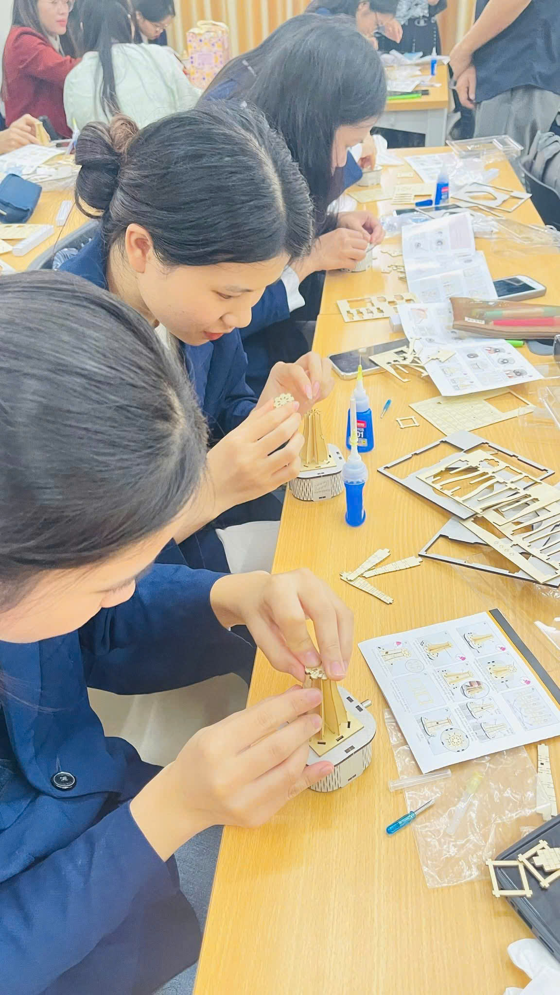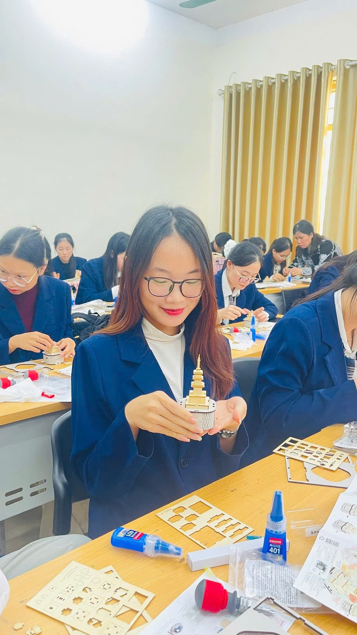 Đặc biệt, dưới sự hướng dẫn trực tiếp của ông Kwon Cheol Ho, sinh viên được trải nghiệm thực hành mô hình kiến trúc thời Tân La (Silla) – giai đoạn vàng son của văn hóa Hàn Quốc, với ba công trình tiêu biểu: Tháp Đa Bảo (다보탑), Tháp Thích Ca (석가탑) và Đài Thiên Văn (첨성대). Hoạt động trải nghiệm này đã khơi gợi sự hứng thú học tập và giúp sinh viên hiểu sâu hơn về mối liên hệ giữa văn học, kiến trúc và tư tưởng thẩm mỹ của Hàn Quốc cổ đại.