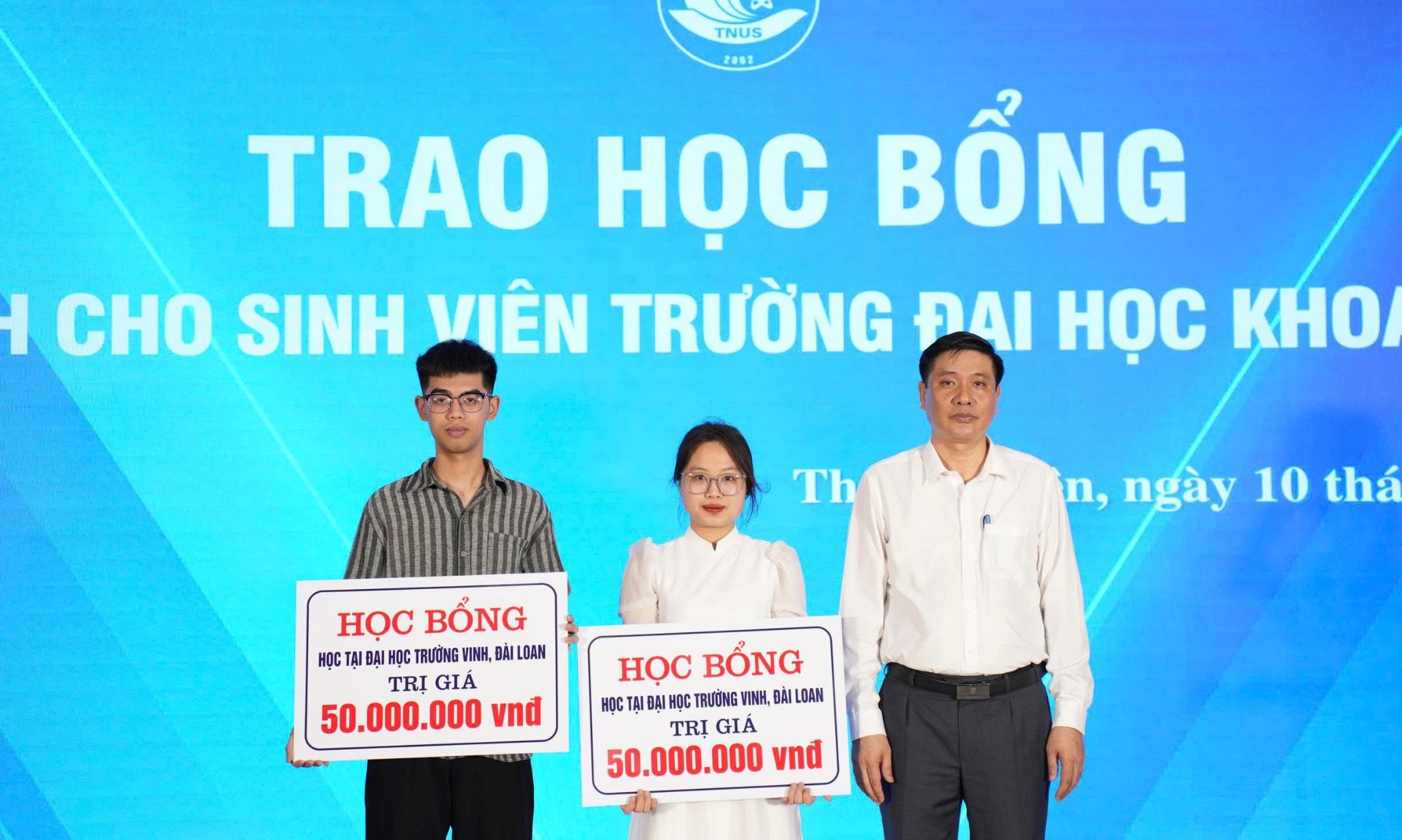 Tại chương trình, Trường ĐHKH đã trao nhiều suất học bổng có giá trị cho các sinh viên có thành tích học tập tốt; trong đó phải kể đến 02 suất Học bổng trao đổi sinh viên 01 học kỳ với Đại học Trường Vinh, Đài Loan trị giá 50 triệu đồng/ sinh viên; 01 suất Học bổng trao đổi 01 kì học với Đại học Valladolid, Tây Ban Nha trong chương trình Erasmus với giá trị 5000 Euro (gần 150 triệu đồng).
