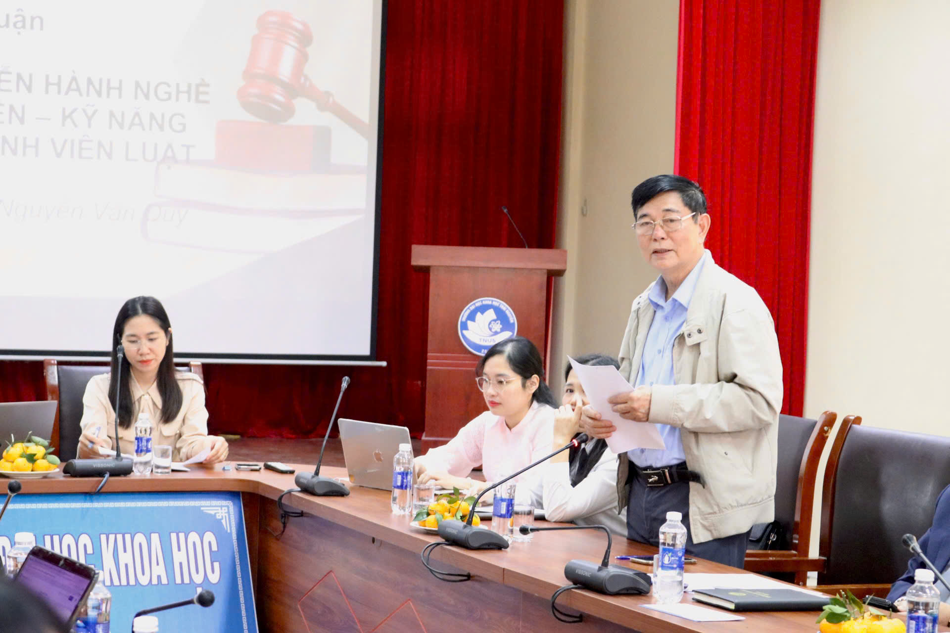 Sự hiện diện của các đại biểu, khách mời đã tạo nên một diễn đàn trao đổi học thuật nghiêm túc và thực tiễn, nơi lý luận pháp lý được kiểm nghiệm và gắn kết chặt chẽ với hoạt động hành nghề, góp phần nâng cao chất lượng đào tạo và phát triển năng lực nghề nghiệp cho sinh viên.
