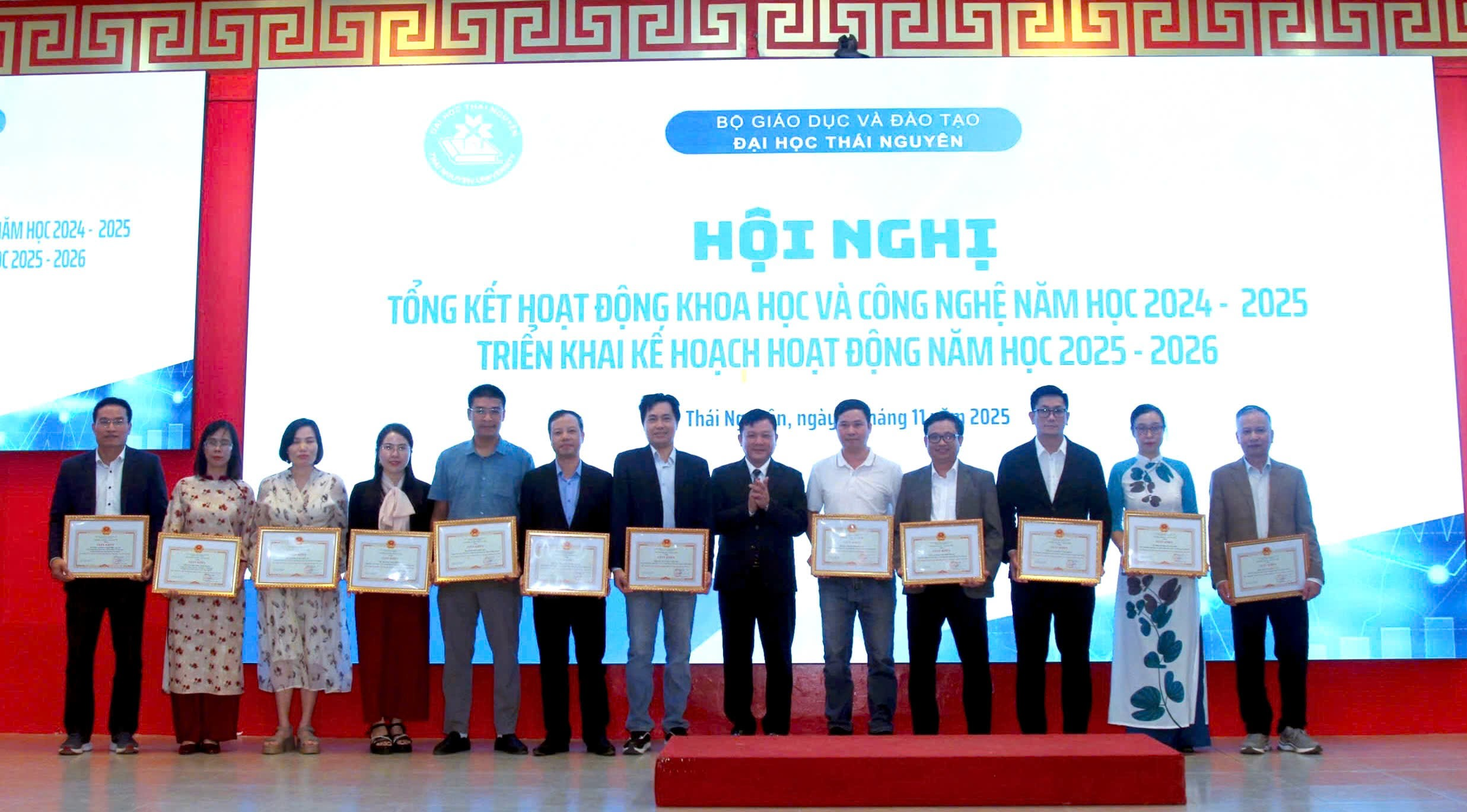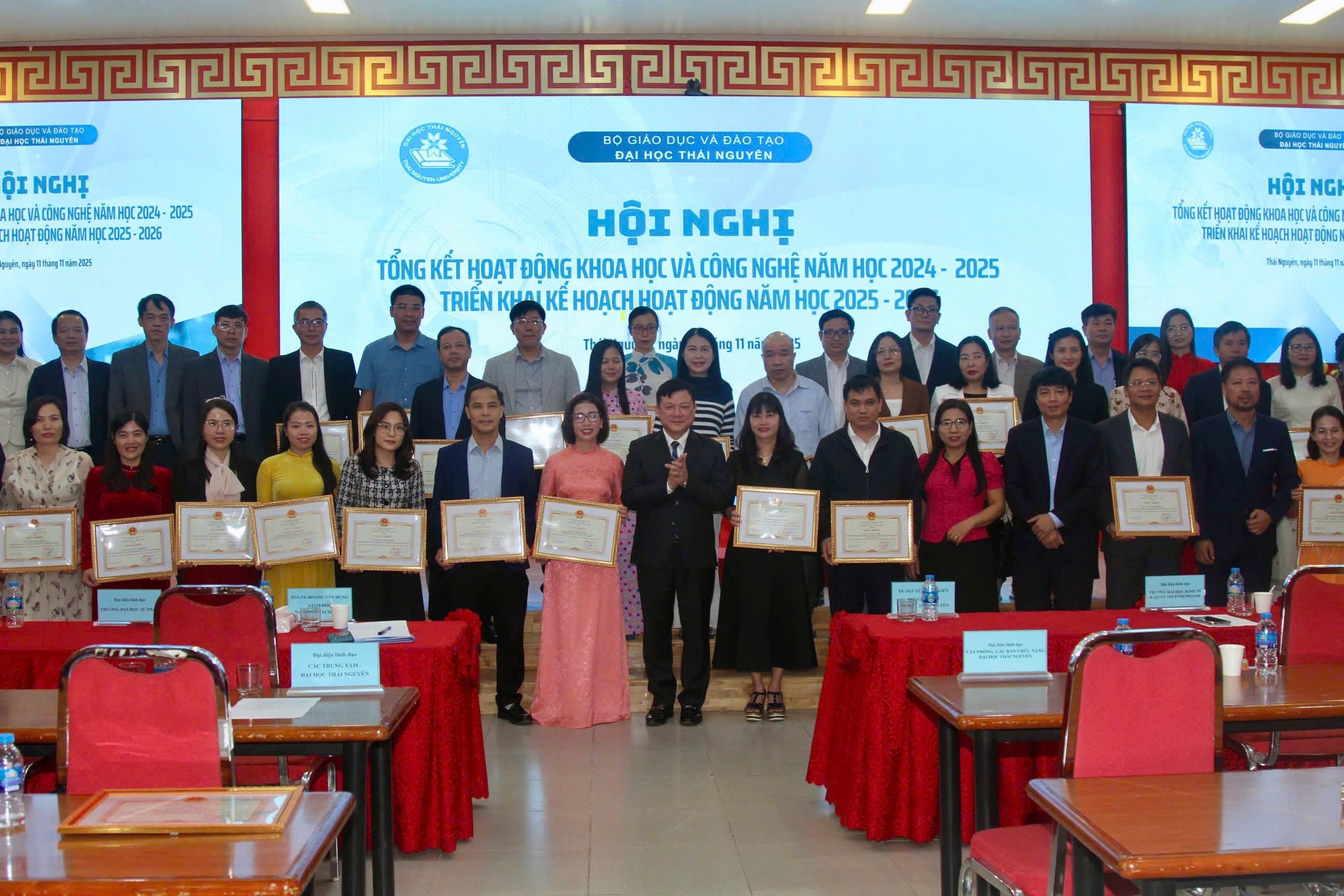Để nghi nhận những thành tích, đóng góp của các tập thể, cá nhân có thành tích xuất sắc trong hoạt động KHCN của Đại học Thái Nguyên năm học 2024 - 2025, Giám đốc Đại học Thái Nguyên quyết định tặng giấy khen cho 03 tập thể và 43 cá nhân có đóng góp nổi bật.