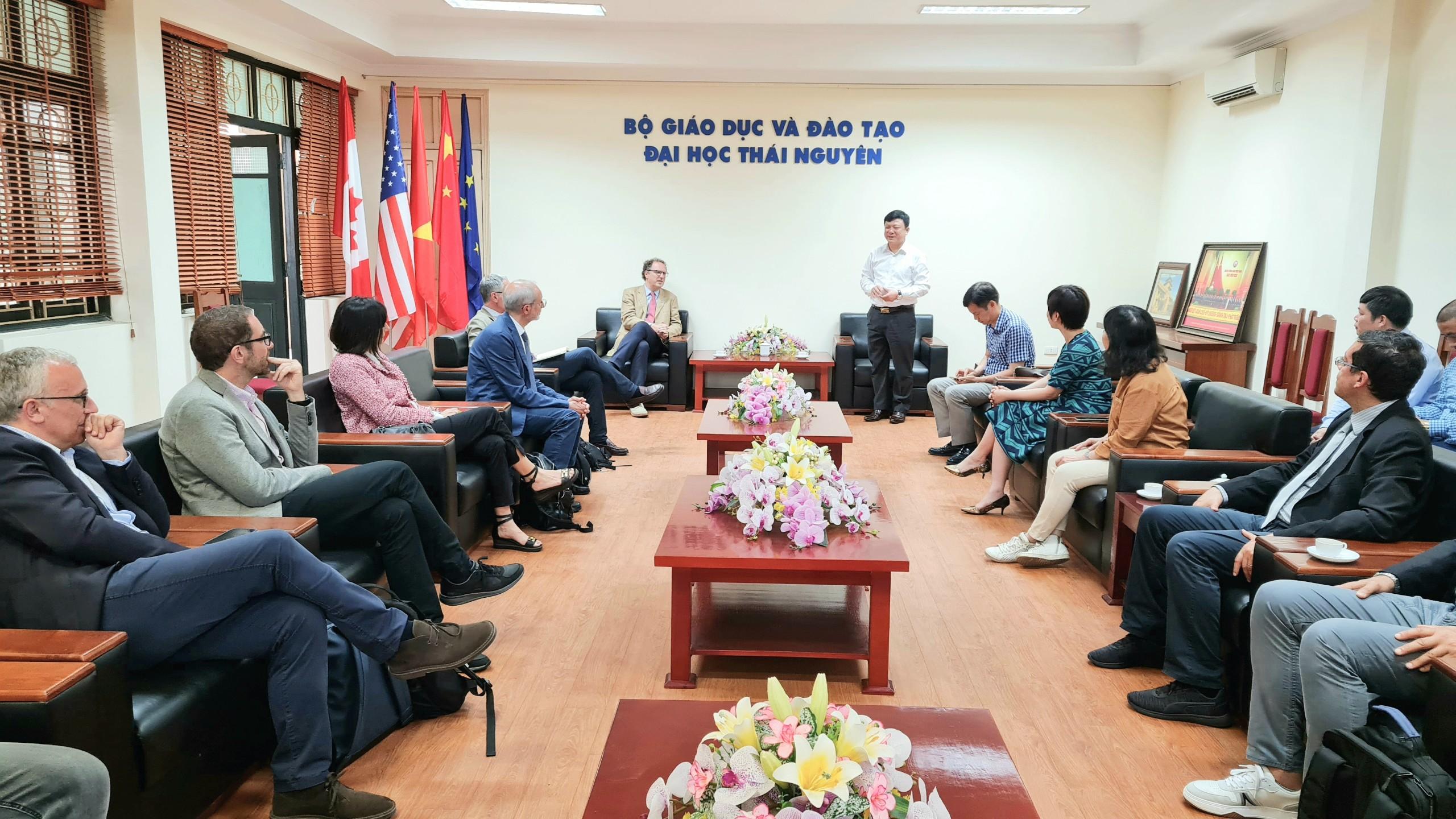 Ảnh 5: Lãnh đạo Đại học làm việc với các đối tác quốc tế