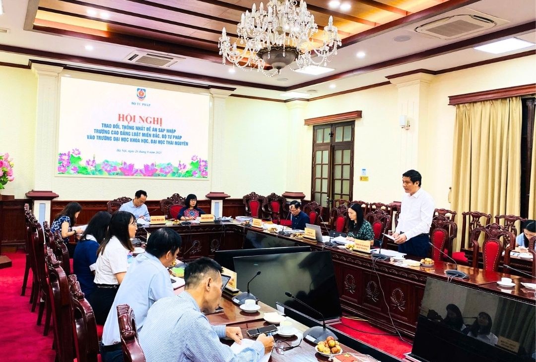 Sáng ngày 26/8, tại trụ sở Bộ Tư pháp, Bộ Giáo dục và Đào tạo cùng Bộ Tư pháp tổ chức Hội nghị trao đổi, thống nhất Đề án sáp nhập Trường Cao đẳng Luật miền Bắc, Bộ Tư pháp vào Trường Đại học Khoa học, Đại học Thái Nguyên.