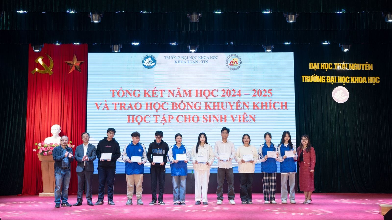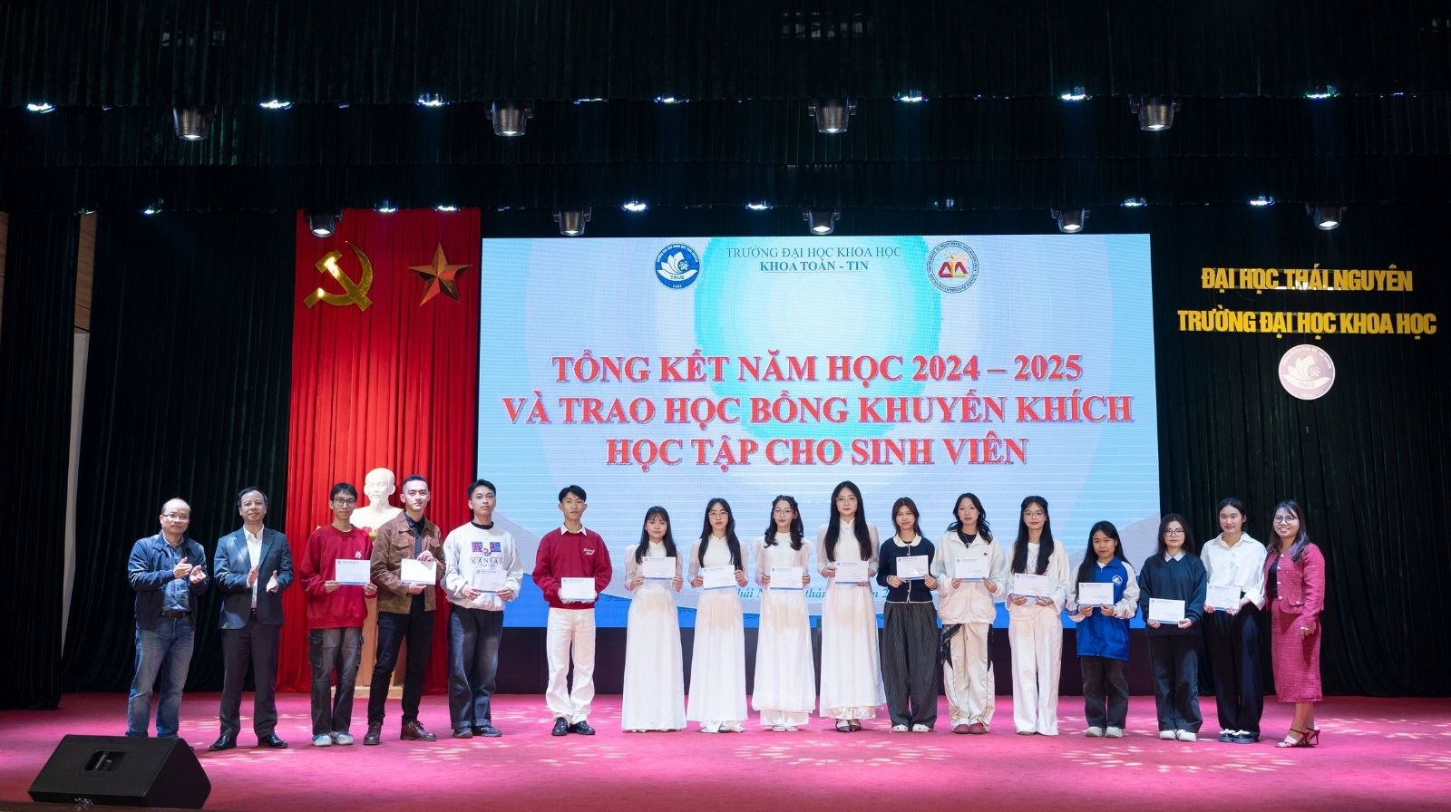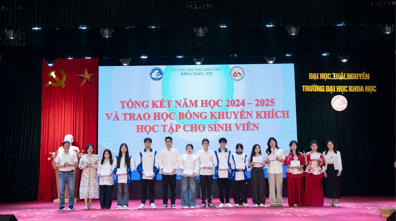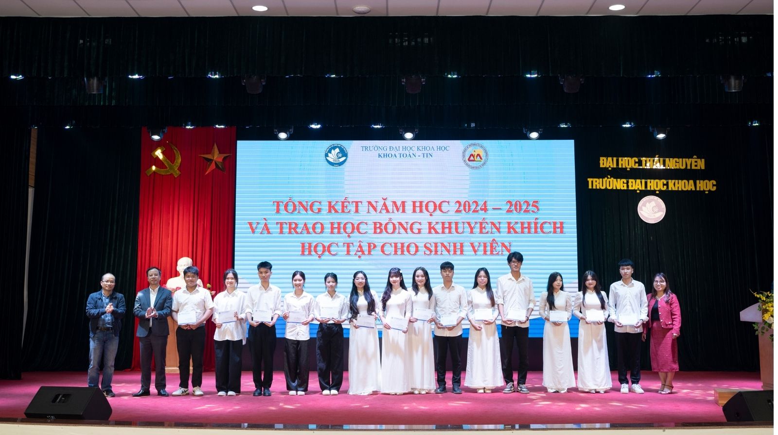 Tối ngày 04/12/2025 vừa qua, tại Hội trường lớn Trường Đại học Khoa học, Khoa Toán - Tin đã tổ chức thành công chương trình Tổng kết năm học 2024-2025 và Trao học bổng khuyến khích học tập đầy ý nghĩa. Chương trình là dịp để thầy và trò Khoa nhìn lại những thành tựu rực rỡ đã đạt được, đồng thời nồng nhiệt chào đón những tân sinh viên Khóa 23.