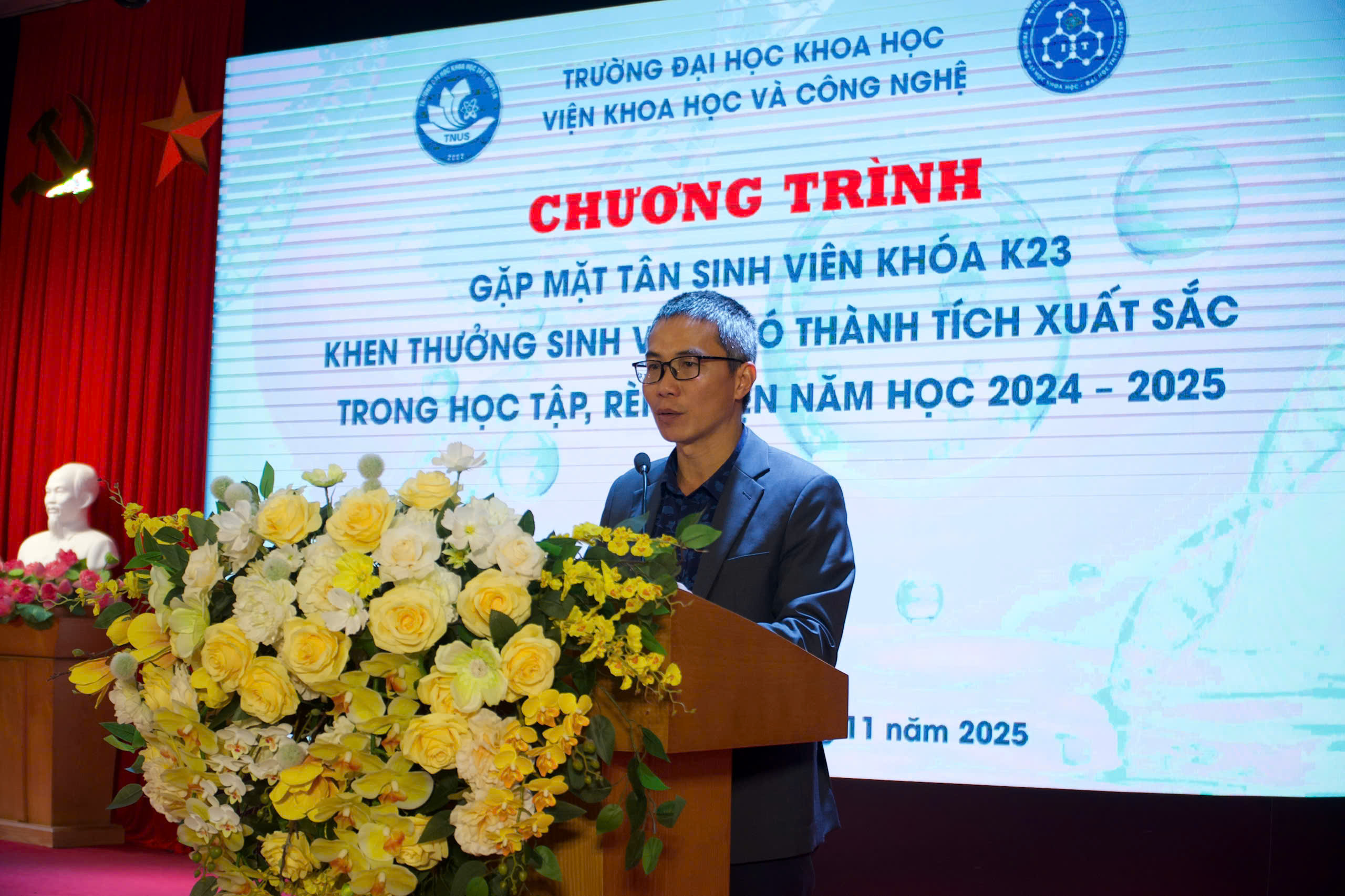 Phát biểu khai mạc chương trình, PGS.TS. Nguyễn Xuân Ca - Viện trưởng Viện KH&CN, đã gửi lời chúc mừng đến các tân sinh viên – những gương mặt xuất sắc đã vượt qua kỳ thi quan trọng để trở thành thành viên mới của Viện. Đồng thời, thầy bày tỏ kỳ vọng các em sẽ giữ vững tinh thần học tập, sáng tạo và trách nhiệm trong hành trình bốn năm tại môi trường đại học.