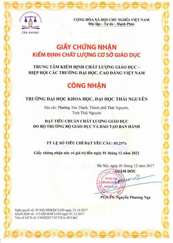 Giấy chứng nhận kiểm định CSGD năm 2017