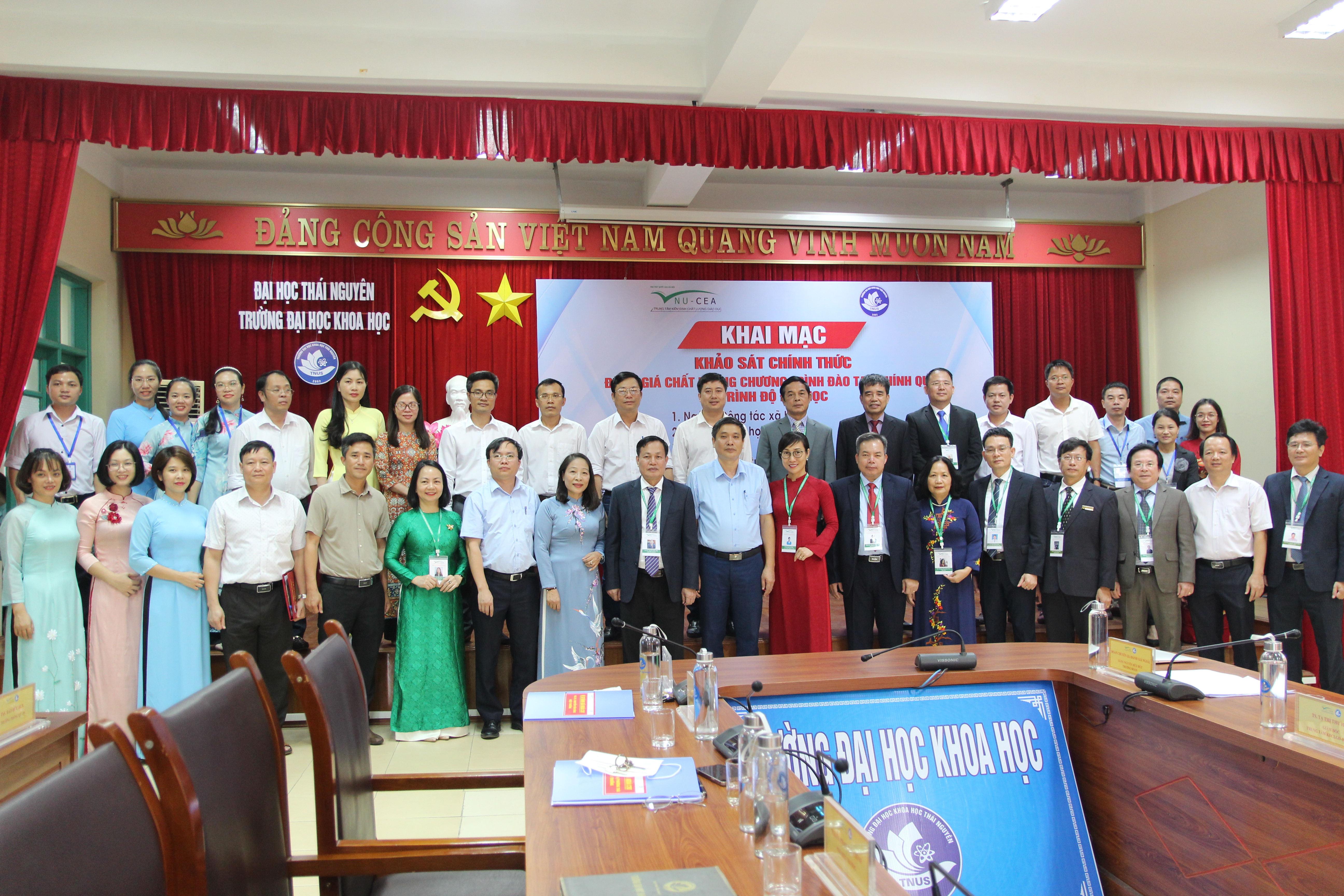 Dự khai mạc có TS. Tạ Thị Thu Hiền – Giám đốc Trung tâm Kiểm định chất lượng giáo dục, Đại học Quốc gia Hà Nội; GS.TS Nguyễn Hữu Đức – Trưởng đoàn đánh giá cùng các thành viên trong đoàn chuyên gia đánh giá ngoài; ThS. Nguyễn Văn Chiến – Phó Trưởng ban Ban Khảo thí và Đảm bảo Chất lượng Giáo dục, Đại học Thái Nguyên.