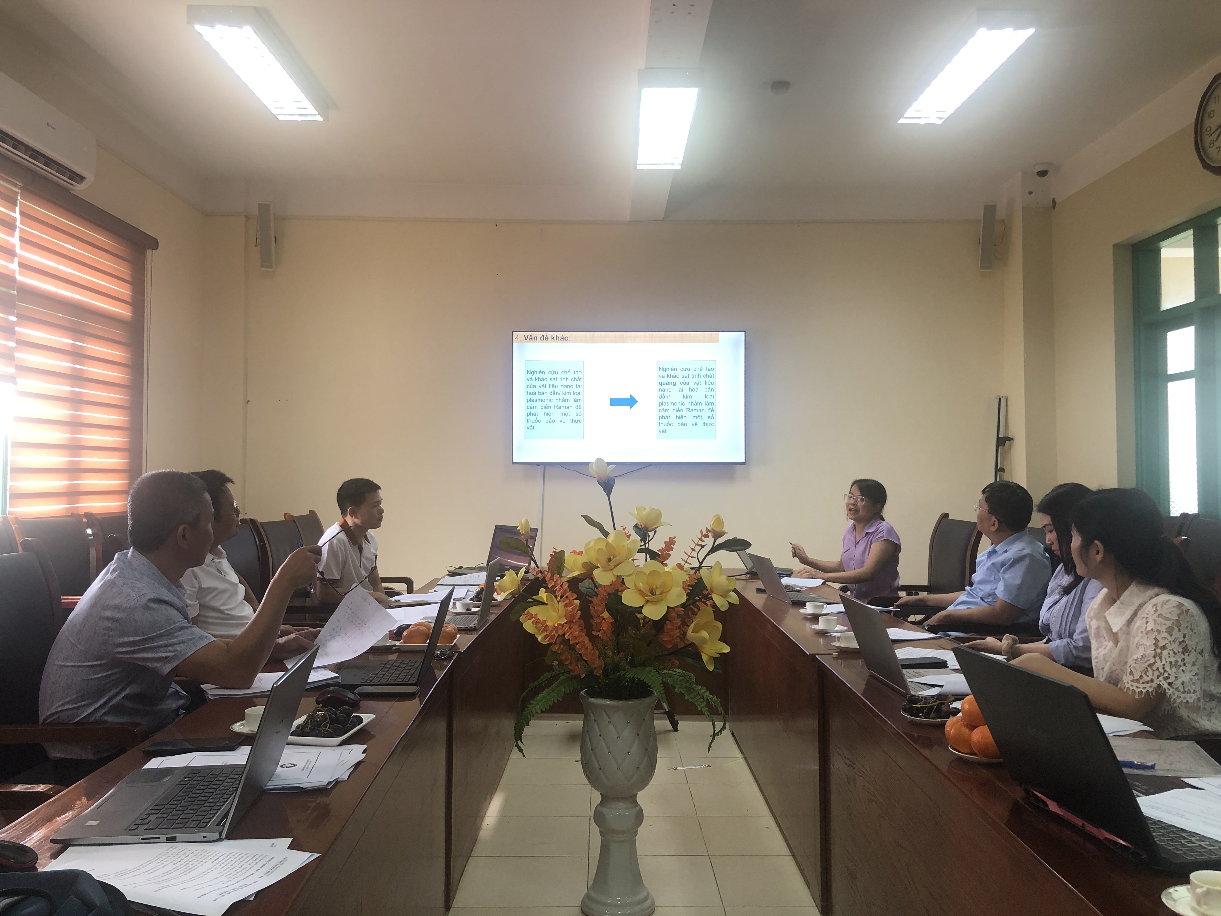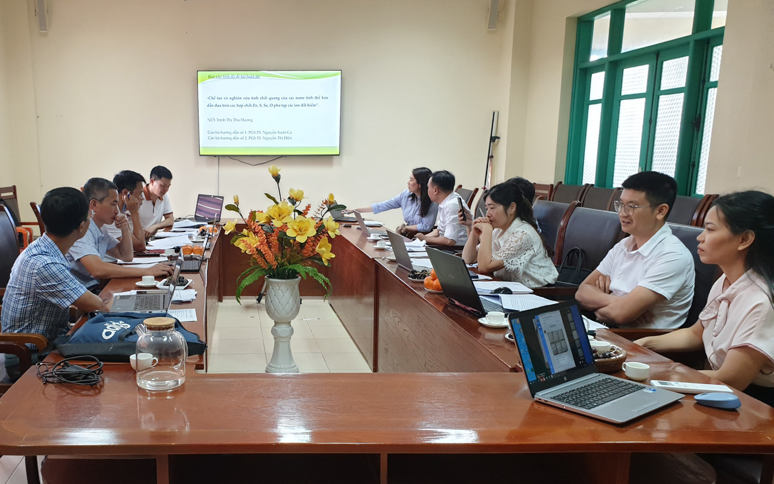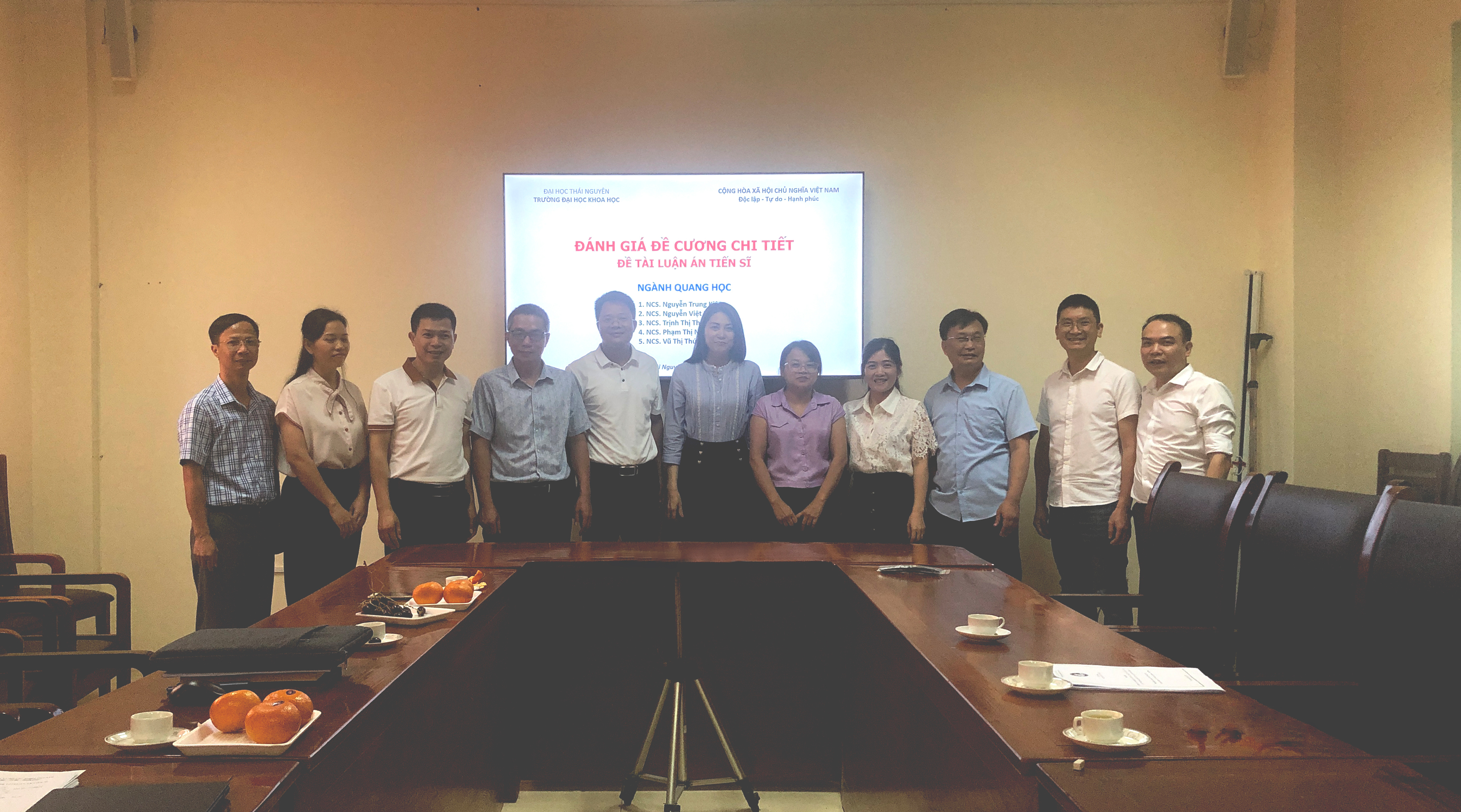 Cùng ngày, đơn vị chuyên môn của Nhà trường là Viện Khoa học và Công nghệ cũng đã họp với các nghiên cứu sinh để kiểm tra tiến độ học tập và nghiên cứu. Qua 06 tháng từ khi có Quyết định công nhận nghiên cứu sinh, người hướng dẫn và tên đề tài luận án dự kiến, các nghiên cứu sinh ngành Quang học của Nhà trường đang thực hiện đúng kế hoạch đào tạo đồng thời rất tích cực trong việc tiến hành thực hiện các nội dung nghiên cứu và bước đầu đã có một số kết quả nghiên cứu rất tốt.