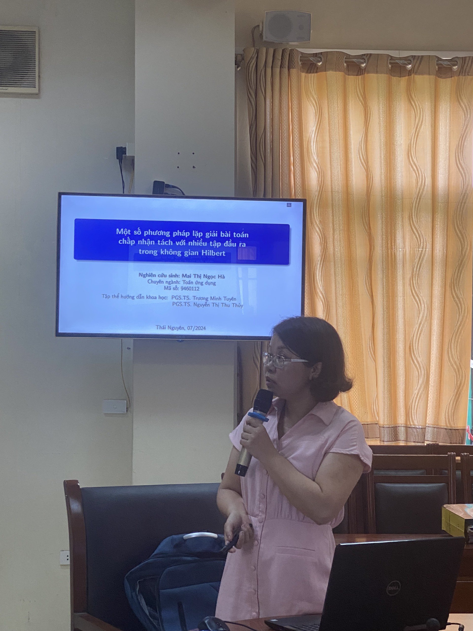 Hội đồng đã ra Quyết nghị và kết luận luận án “Một số phương pháp lặp giải bài toán chấp nhận tách với nhiều tập đầu ra trong không gian Hilbert” của NCS. Mai Thị Ngọc Hà đã đáp ứng đầy đủ yêu cầu của một luận án Tiến sĩ Toán học, ngành Toán ứng dụng với 07/07 phiếu đánh giá tán thành.