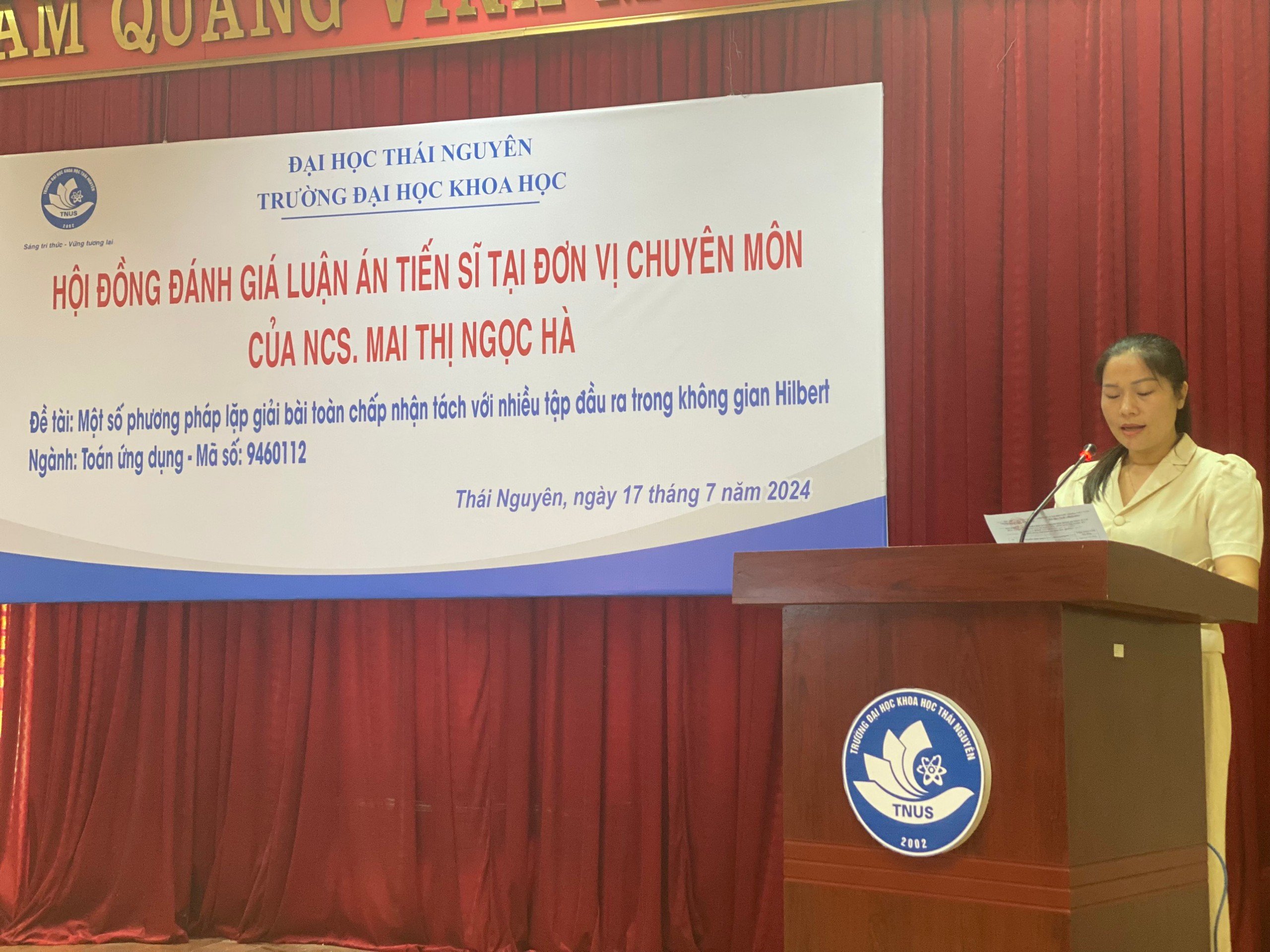 Đánh giá luận án tiến sĩ tại đơn vị chuyên môn cho NCS. Mai Thị Ngọc Hà