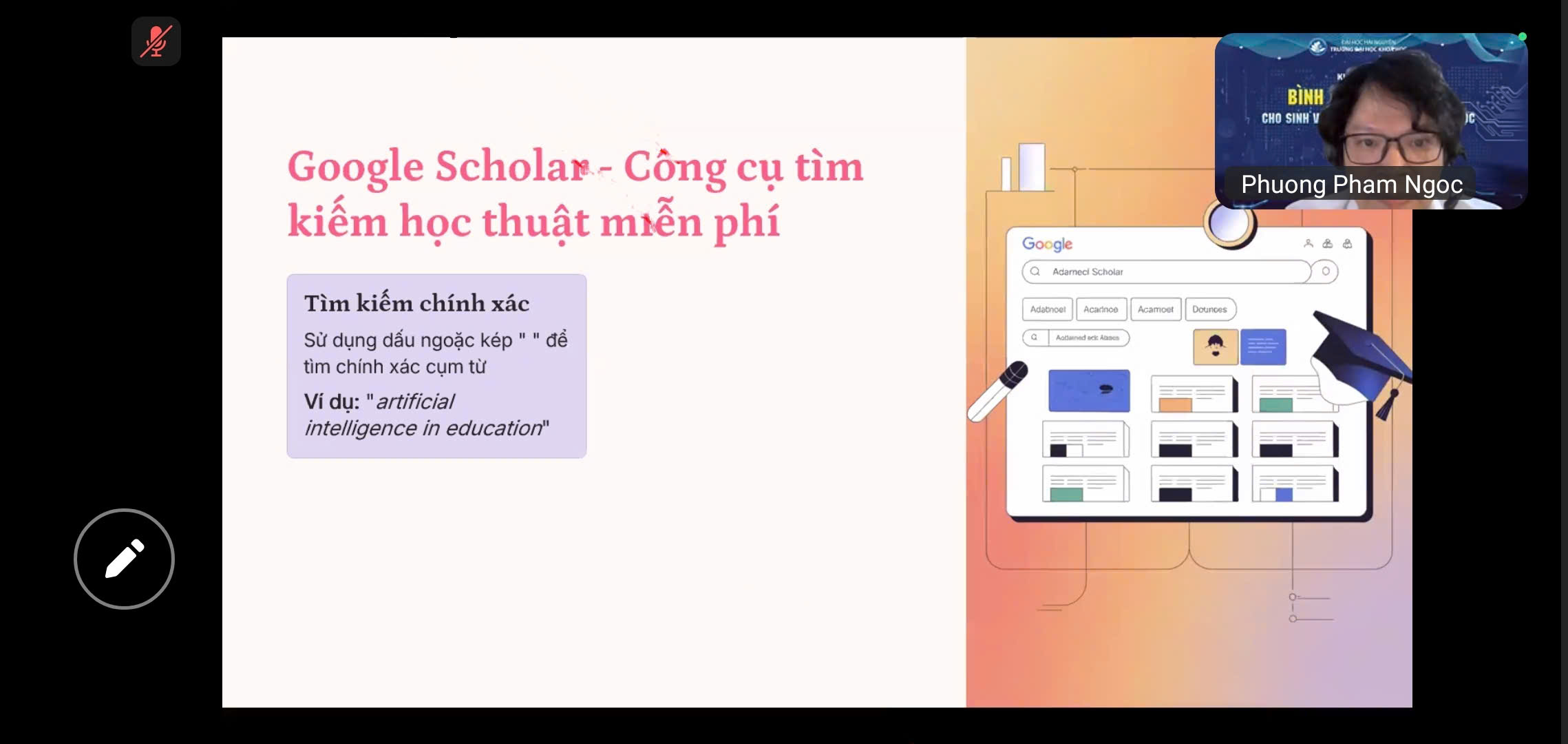Trang bị kỹ năng sử dụng hiệu quả Google Scholar, thư viện số và các cơ sở dữ liệu học thuật; hướng dẫn phân tích độ tin cậy của nguồn thông tin, trình bày kết quả nghiên cứu bằng infographics và biểu đồ trực quan; đồng thời rèn luyện kỹ năng quản lý thời gian, công việc bằng các công cụ như Google Calendar và Gitmind.