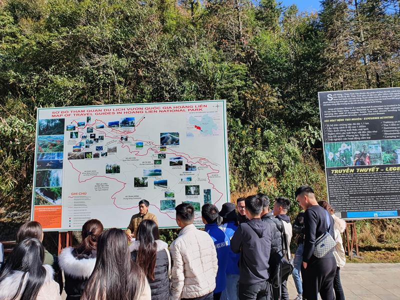 Buổi chiều hôm đó, chúng tôi tiếp tục được cán bộ Trung tâm Giáo dục môi trường - Vườn Quốc Gia (VQG) Hoàng Liên hướng dẫn tìm hiểu về đa dạng sinh học và công tác bảo tồn kết hợp phát triển cho đồng bào tại Vườn. Ngoài ra, chúng tôi biết thêm về sự phân hóa tự nhiên theo đai cao, theo chiều Đông Tây, ảnh hưởng của thời tiết và biến đổi khí hậu đến VQG.