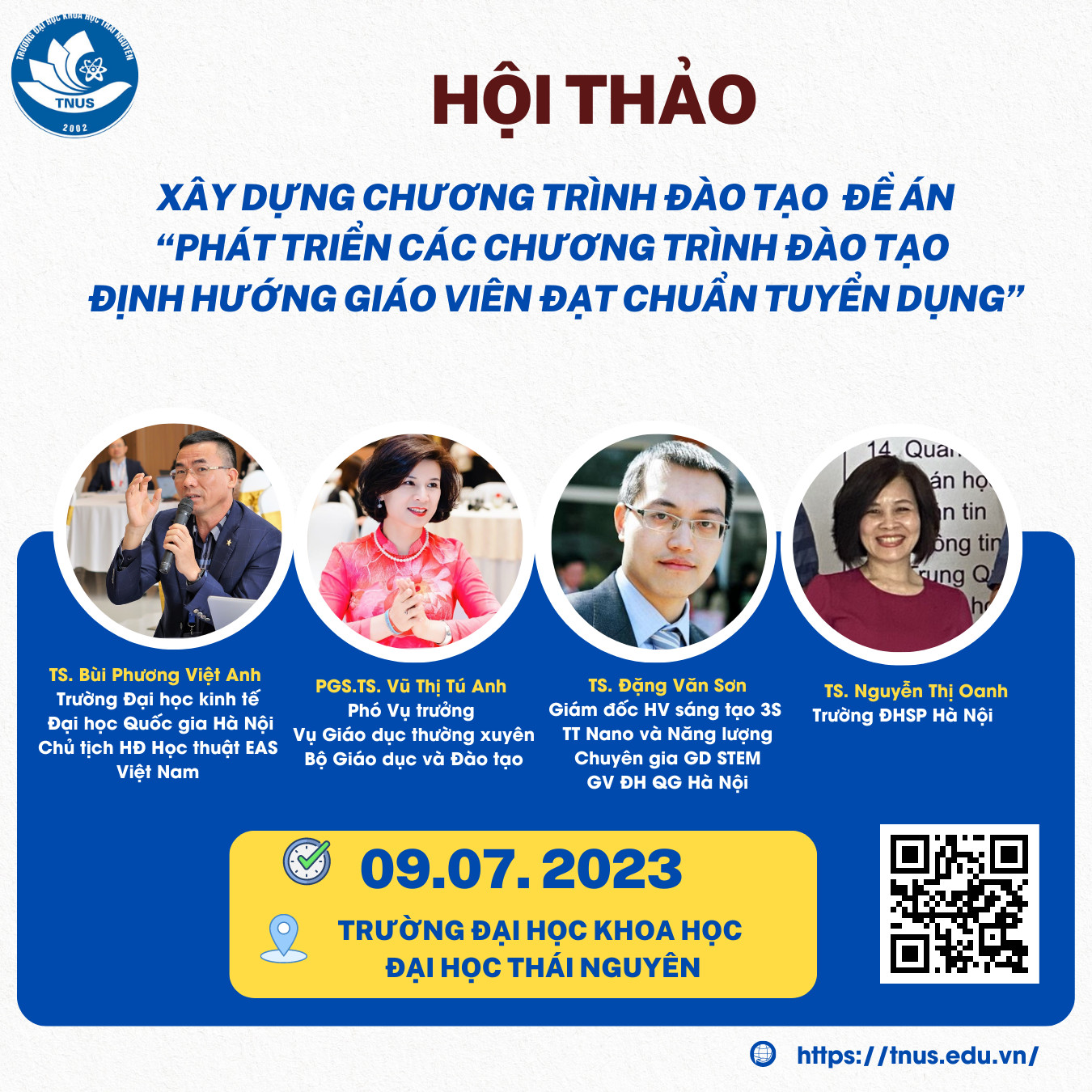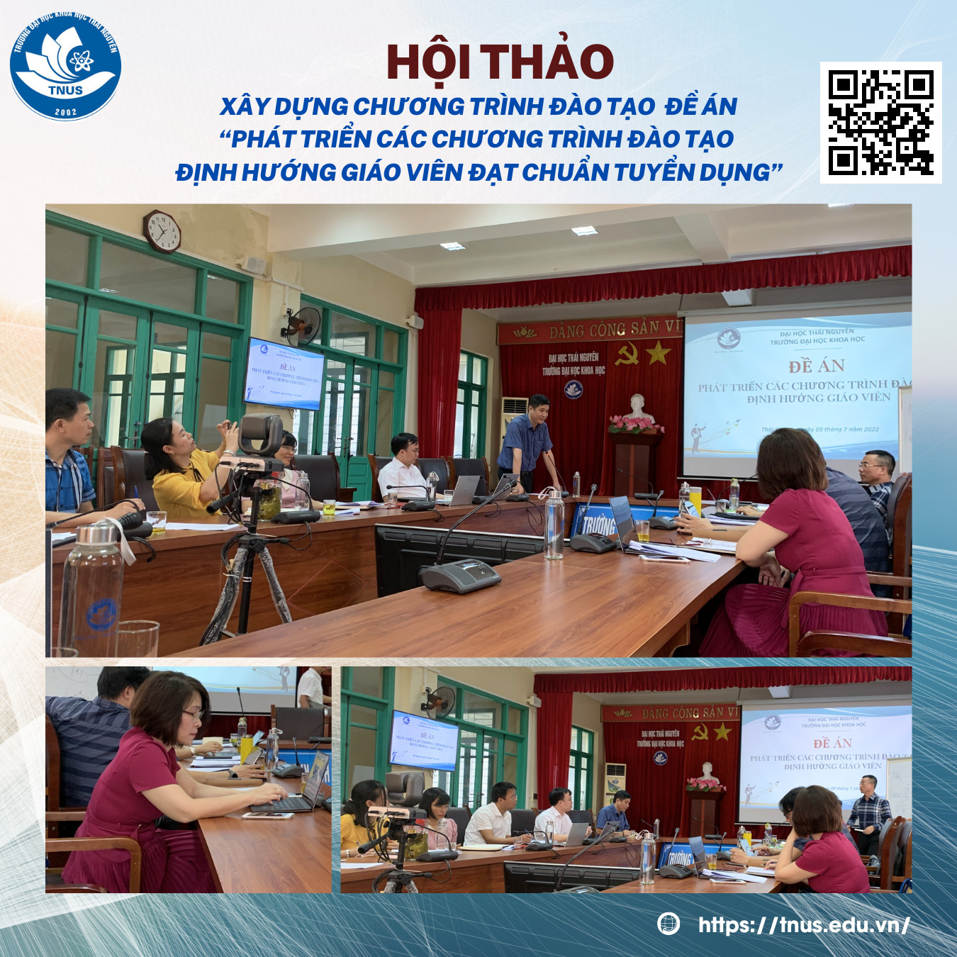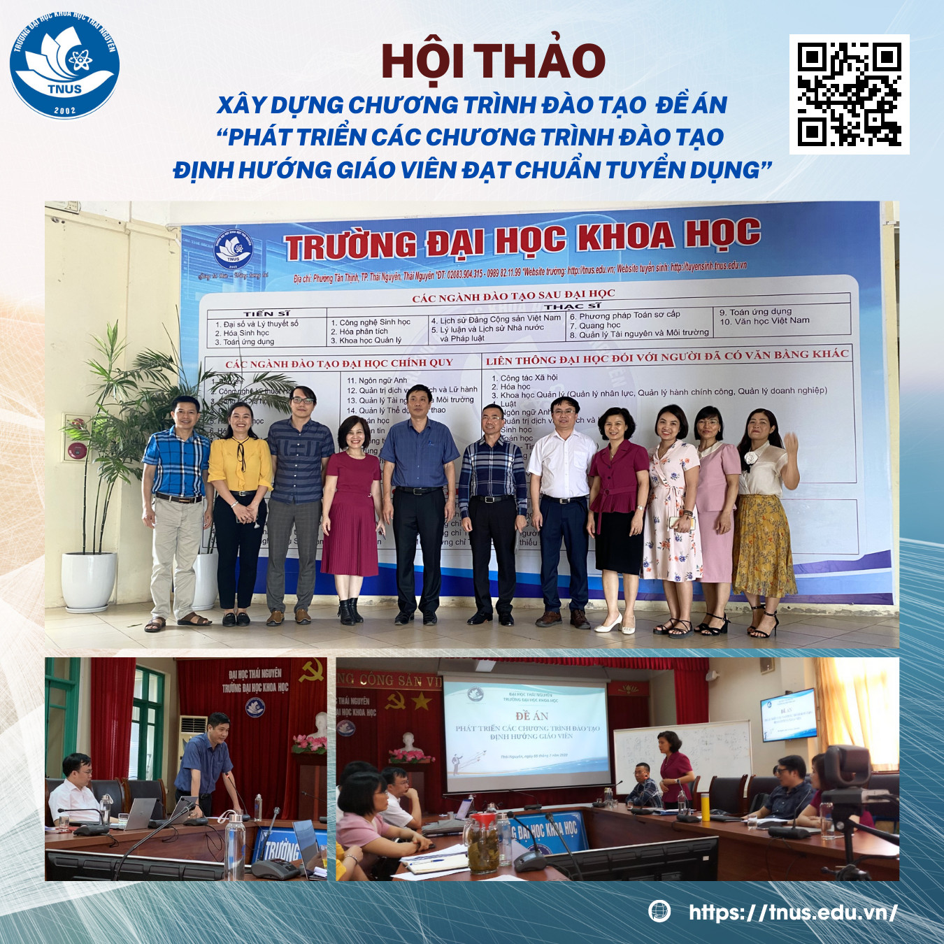 Hội thảo xây dựng chương trình đào tạo thuộc Đề án "Phát triển các chương trình đào tạo định hướng giáo viên đạt chuẩn tuyển dụng" đã thành công diễn ra vào sáng ngày 09 tháng 07 năm 2023 tại Phòng Hội thảo, Trường Đại học Khoa học - Đại học Thái Nguyên. Sự kiện này đã thu hút sự tham gia của các chuyên gia hàng đầu trong lĩnh vực giáo dục và đào tạo, góp phần quan trọng vào việc nâng cao chất lượng giáo dục và tạo ra hướng đi mới cho Trường Đại học Khoa học trong việc thực hiện sứ mệnh đào tạo nguồn nhân lực chất lượng cao cho khu vực miền núi phía Bắc nói riêng và cho hệ thống giáo dục quốc gia nói chung.