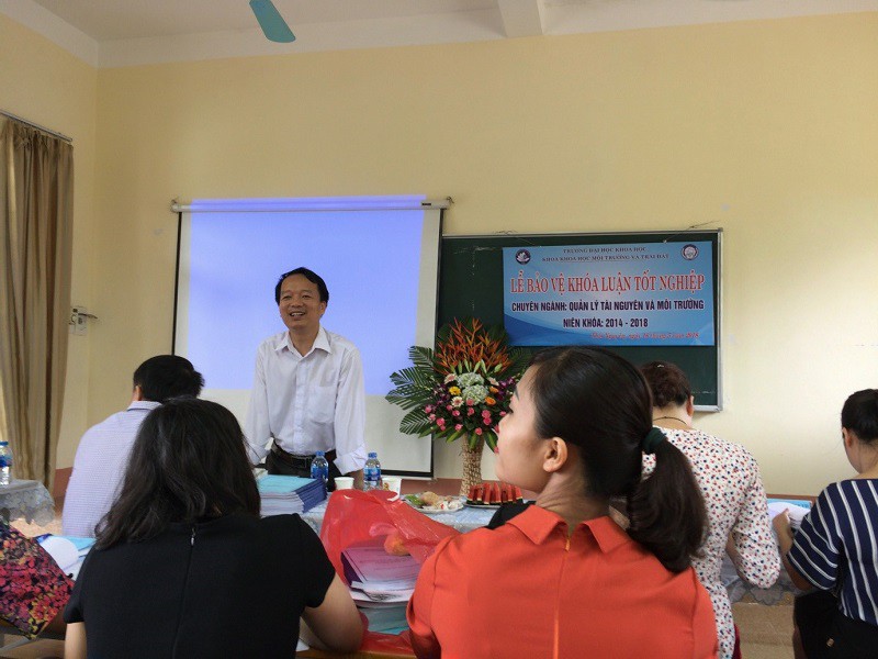 Lễ bảo vệ Khóa luận đã diễn ra trong không khí khẩn trương, nghiêm túc, khoa học và chân thành đã để lại nhiều cảm xúc trong lòng thầy và trò. 33 đề tài là 33 góc nhìn khác nhau về các vấn đề như phát triển du lịch cộng đồng; ứng dụng than hoạt tính biến tính để xử lý nước ô nhiễm; đánh giá hiện trạng công tác quản lý chất thải; nghiên cứu rủi ro thiên tai và thích ứng với biến đổi khí hậu….