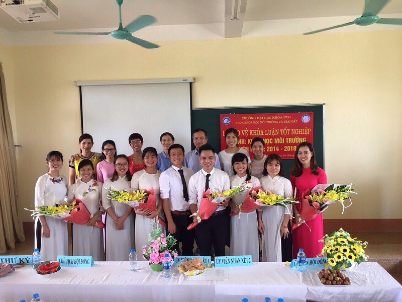 Trong 3 ngày 14, 15, 16 tháng 5 năm 2018, Khoa Khoa học Môi trường và Trái đất, Trường Đại học Khoa học đã tiến hành tổ chức Lễ Bảo vệ Khóa luận tốt nghiệp cho 33 sinh viên các ngành Địa lý, Khoa học Môi trường, Quản lý tài nguyên và Môi trường K12 (2014-2018). Đây là những sinh viên xuất sắc nhất đại diện cho gần 200 SV khóa 12 của Khoa Môi trường và trái đất.