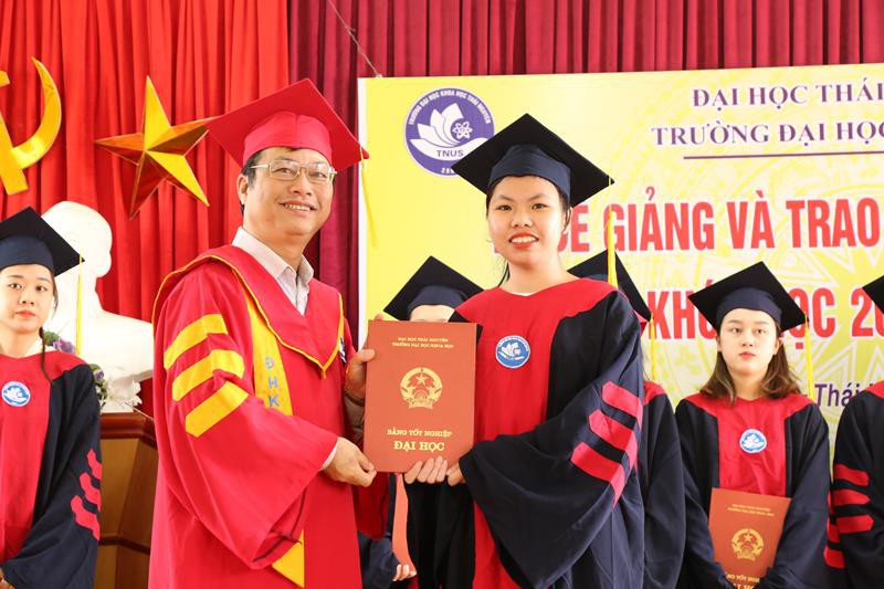 PGS.TS. Nguyễn Văn Đăng trao bằng tốt nghiệp Đại học cho sinh viên Đinh Thị Hằng