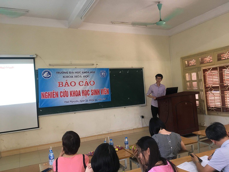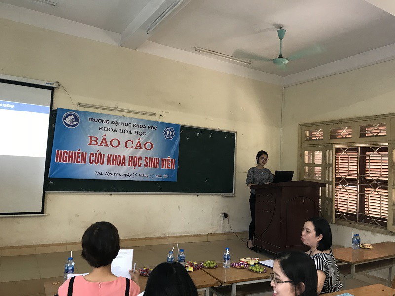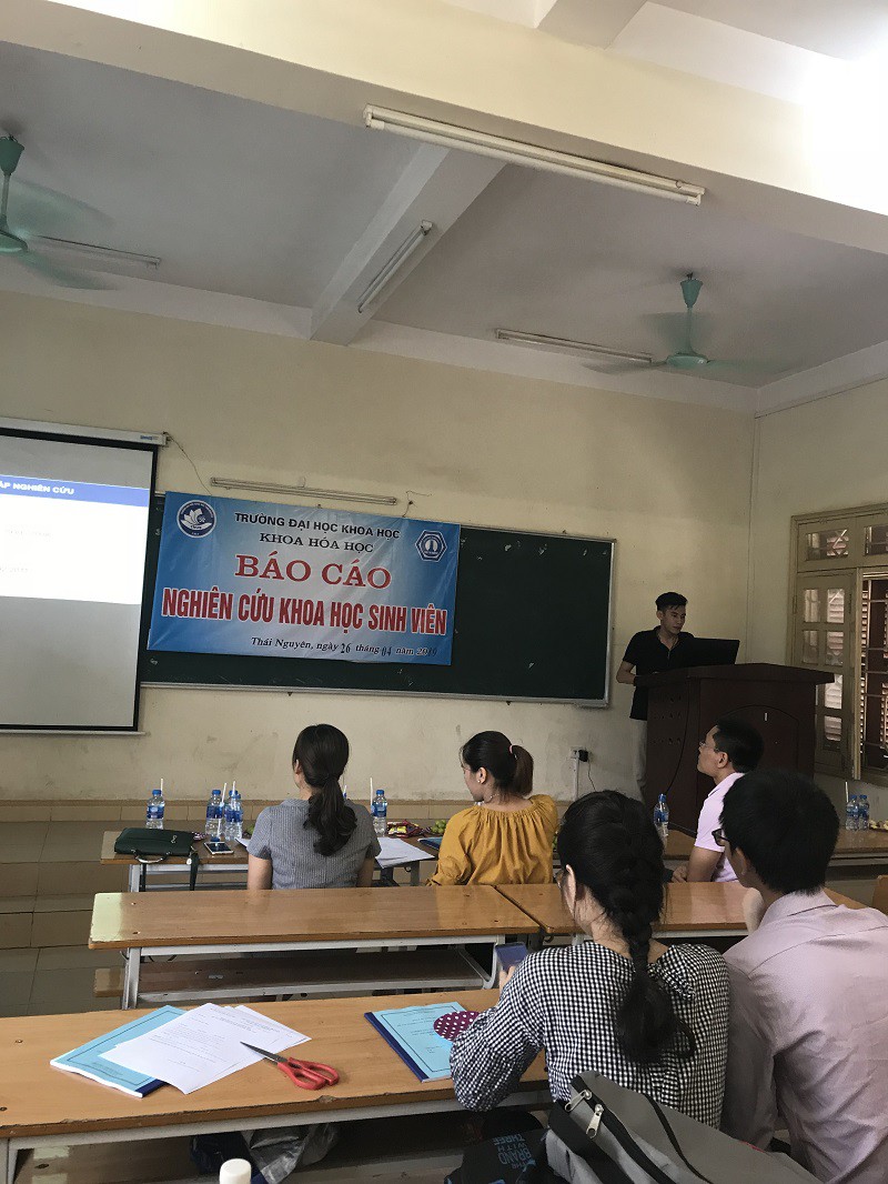 Ngày 26/04/2019, Khoa Hóa học Trường Đại học Khoa học đã tổ chức buổi nghiệm thu đề tài sinh viên nghiên cứu khoa học thuộc ngành Hóa dược và CNKT Hóa. Dưới sự chỉ dẫn khoa học nhiệt thành của các giảng viên, các nhà khoa học trẻ trong Khoa, 03 chủ nhiệm đề tài sinh viên nghiên cứu khoa học (gồm Trương Thị Uyên lớp Hóa dược K14 với đề tài Nghiên cứu thành phần hóa học và hoạt tính sinh học của dịch chiết phân cực của hạt quả mác mật ở Lạng Sơn; Phạm Ngọc Toán lớp CNKT Hóa K14 với đề tài Nghiên cứu chế tạo tổ hợp vật liệu ZnO-Graphene xử lý Cr VI trong nước; Nguyễn Văn Đàm Thiên lớp Hóa dược K14 với đề tài “Tổ hợp và đặc trưng tính chất vật liệu nano từ Fe3O4) đã bảo vệ thành công các kết quả nghiên cứu khoa học của mình sau một năm miệt mài nghiên cứu.