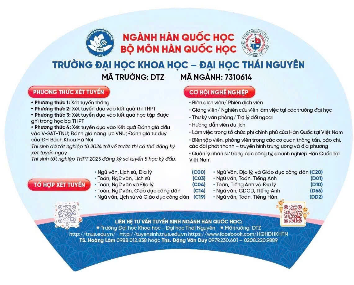📍 Để trở thành sinh viên ngành Hàn Quốc học – Trường Đại học Khoa học – Đại học Thái Nguyên, thí sinh có thể xét tuyển thông qua phương thức sau: