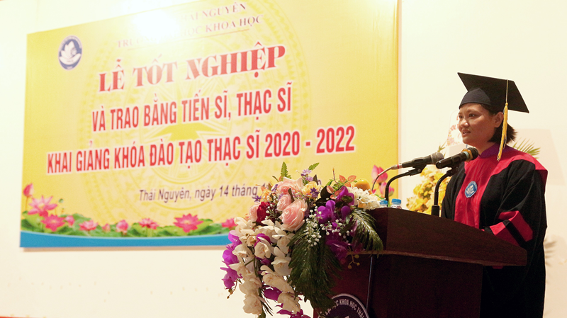 Trong niềm hân hoan, vui mừng của ngày tốt nghiệp, tân ThS. Đỗ Thị Ngọc Quỳnh chuyên ngành Toán Ứng dụng, đại diện cho các tân TS, ThS bày tỏ lòng biết ơn sâu sắc tới các thầy, cô giáo Trường Đại học Khoa học đã tận tình dạy bảo, giúp đỡ và luôn đồng hành cùng học viên trong suốt khóa học. Đồng thời hứa sẽ tiếp tục nỗ lực hơn nữa trong công tác, đóng góp tích cực cho sự nghiệp giáo dục của tỉnh Thái Nguyên và khu vực.