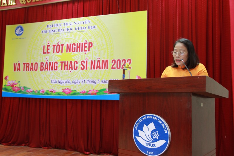 Phát biểu tại buổi lễ, PGS.TS. Phạm Thị Phương Thái – Phó Hiệu trưởng đã trân trọng chúc mừng các tân Thạc sĩ và gửi lời cảm ơn chân thành tới các thầy, cô giáo, các cán bộ thuộc các phòng chức năng đã và đang góp phần quan trọng đối với công tác đào tạo SĐH của Nhà trường. Đồng thời cô nhắn gửi tới các Tân Thạc sĩ: “Qua hai năm học tập, các học viên được cập nhật kiến thức mới về chuyên môn, được trang bị thêm phương pháp tư duy mới mà các thầy cô giáo đã dày công tích lũy và ấp ủ. Chúng tôi hy vọng, những kiến thức, kỹ năng đã chia sẻ với các bạn trong hai năm qua sẽ là nguồn tri thức hữu ích giúp các bạn ứng dụng trong công việc chuyên môn, đồng thời sẽ là hành trang để các bạn đi tiếp hành trình phát triển sự nghiệp. Chúng tôi luôn tin tưởng và chờ đón sự thành công mới của các bạn”.
