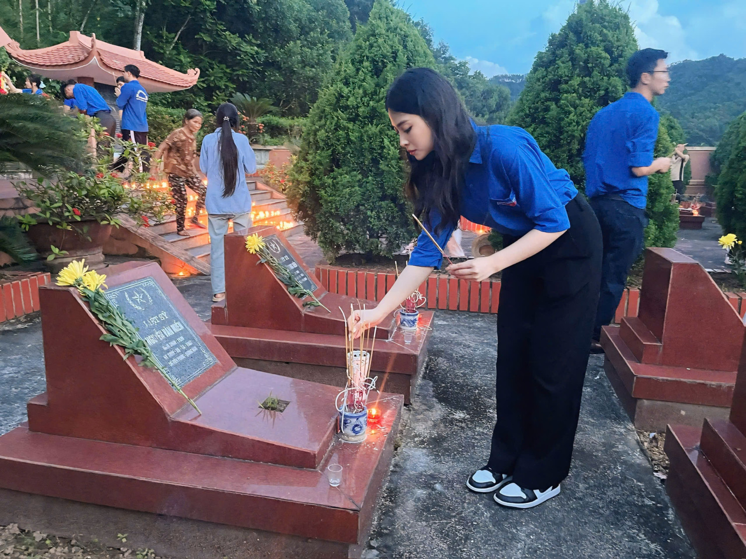 Chương trình “Thắp nến tri ân - Viết tiếp câu chuyện hoà bình” đã diễn ra trang nghiêm và xúc động. Dưới ánh nến lung linh, đoàn viên thanh niên đã cùng nhau thắp lên những ngọn nến yêu thương – như những lời tri ân thầm lặng nhưng sâu sắc gửi tới các anh hùng đã nằm lại nơi đất mẹ.