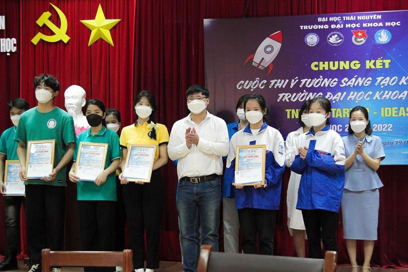 Giải Triển vọng: cho các ý tưởng: “Xây dựng kênh thông tin truyền thông về các sản phẩm TNUS” - Khoa Báo Chí và Truyền thông Trường ĐHKH; “Phần mềm tự động báo vị trí xe hai bánh bị tai nạn qua SMS trên hệ điều hành android” - Trường THPT Lưu Nhân Chú; Sản xuất phân hữu cơ từ rác thải sinh hoạt hộ gia đình” - Khoa Tài Nguyên và Môi trường Trường ĐHKH.