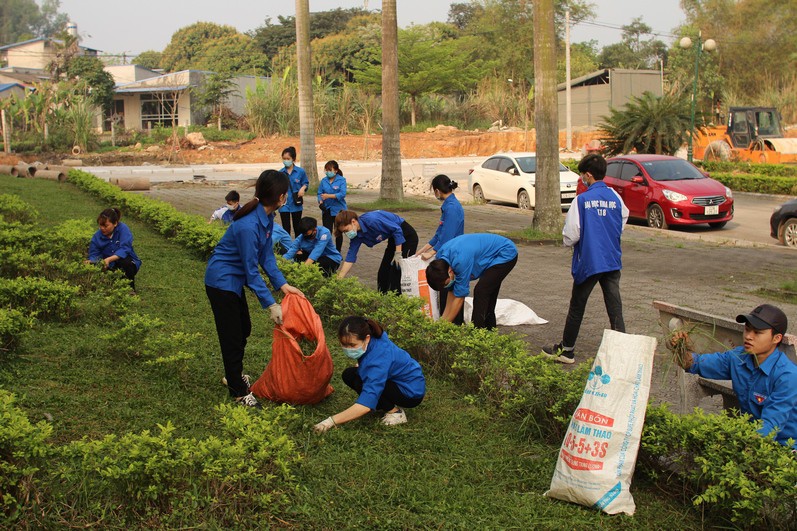 Ngay từ sáng sớm, trong trang phục màu Xanh tình nguyện, màu Xanh của tuổi trẻ, hàng trăm bạn đoàn viên TNUS đã nô nức tập trung để tham gia hoạt động. Trong không khí đầy vui tươi, phấn khởi, người mang cuốc, người mang xẻng, người chuẩn bị mang bao tải và nhiều dụng cụ lao động khác, tỏa về các khu vực đã được phân công tiến hành dọn vệ sinh, cải tạo cảnh quan theo đúng kế hoạch do BCH Đoàn Trường đề ra. Nội dung công việc các bạn được phân công là: nhổ, rẫy và phát cỏ; thu gom rác; quét và vệ sinh sạch sẽ các tuyến đường, khu vực sân trường; đào hố và trồng mới cây xanh.
