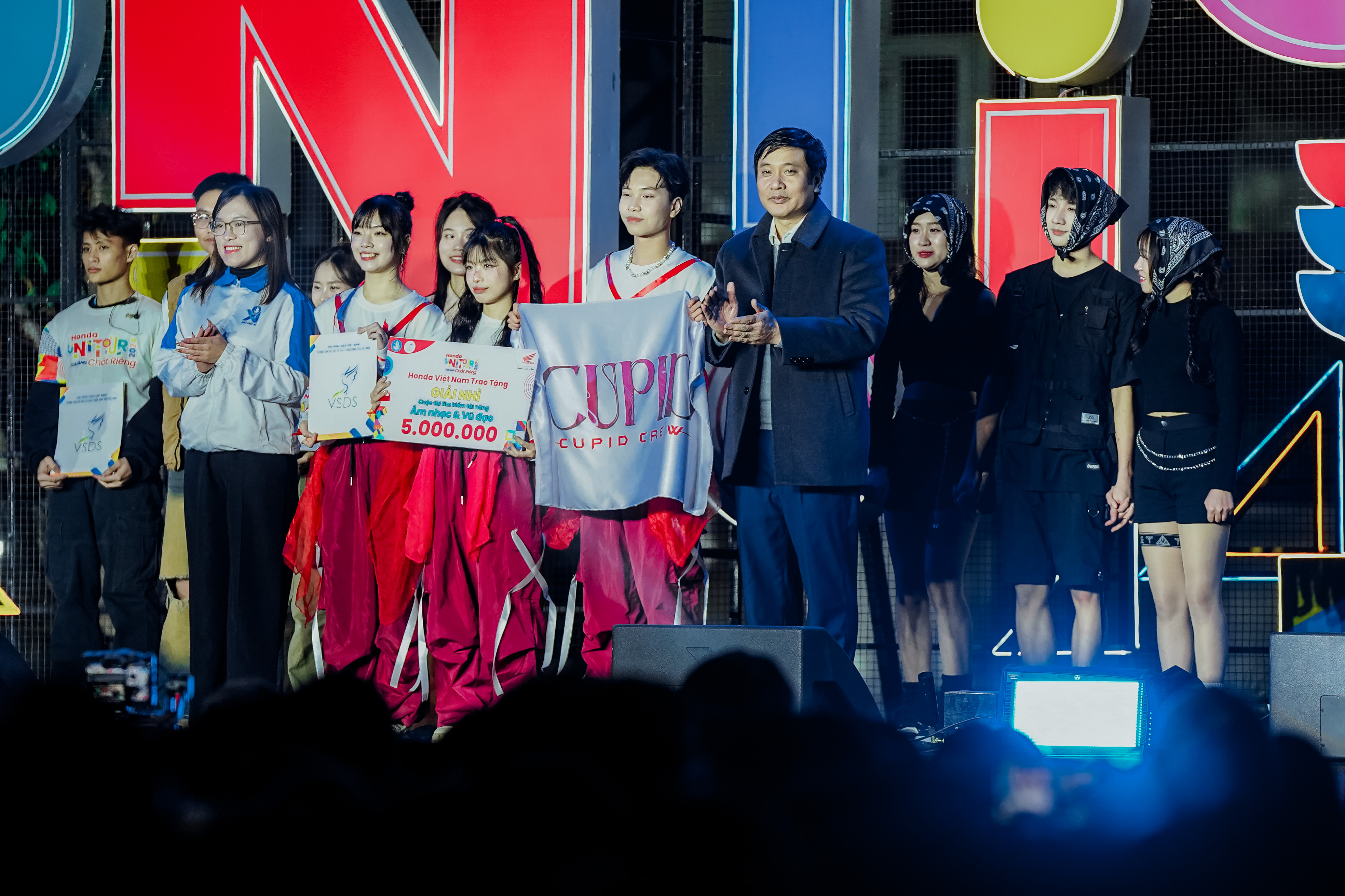 Đêm nhạc hội HONDA UNITOUR 2024 là điểm nhấn khép lại chương trình, mang đến không gian âm nhạc sôi động và bùng nổ cảm xúc. Chương trình có sự góp mặt của nhiều nghệ sỹ, ca sỹ nổi tiếng như: Double 2T, Miina, Bùi Trường Linh...Những màn trình diễn chuyên nghiệp, hệ thống âm thanh ánh sáng hoành tráng cùng sự cổ vũ cuồng nhiệt của hơn 5000 sinh viên đã tạo nên một đêm đại hội đáng nhớ. Đó thực sự là thời khắc tất cả các bạn sinh viên cùng nhau toả sáng, kết nối và chia sẻ niềm đam mê.