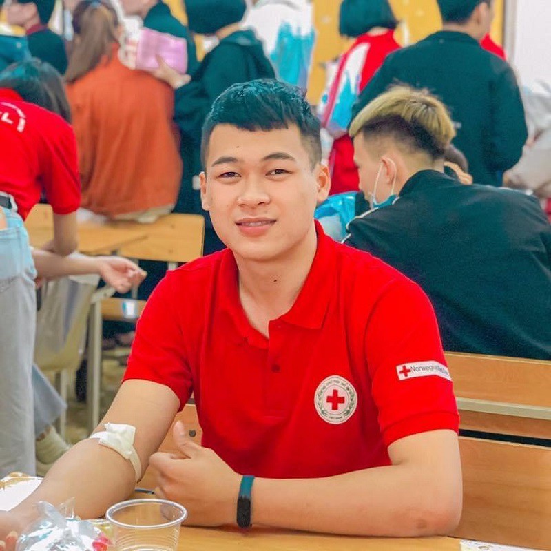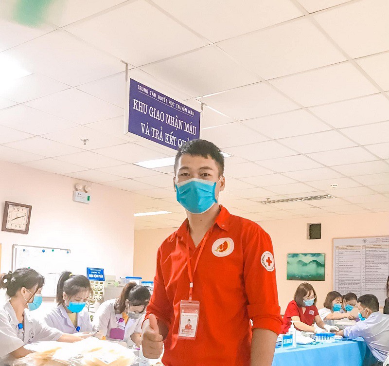 Đến Trung tâm Huyết học - Truyền máu, Khoa Huyết học lâm sàng, Bệnh viện Trung ương Thái Nguyên, chúng tôi gặp Ngọc trong màu áo đỏ. Nhìn thấy chúng tôi, em nở một nụ cười tươi rồi lại nhanh chóng quay trở lại công việc. Bóng dáng cậu nam sinh tình nguyện ấy xuất hiện ở hầu khắp các sảnh của Khoa Huyết học lâm sàng. Khi Ngọc đưa đón, hướng dẫn các tình nguyện viên do em đã kết nối được, đến để làm các thủ tục trước khi tham gia hiến máu; khi thì thăm hỏi các bệnh nhân thiếu máu mãn tính đang điều trị; tham gia tổ chức điểm hiến máu nhỏ tại Trung tâm: chuẩn bị nước uống, bánh kẹo và các phần quà cho người hiến máu... Em nói “Niềm vinh hạnh của Tuổi trẻ là được khoác trên mình màu áo xanh tình nguyện viên, nhưng với em, màu áo ấy còn có ý nghĩa hơn khi mang thêm một màu đỏ, màu đỏ của những hồng cầu được kết nối”. Tâm niệm của Ngọc đúng với mục đích cao cả của Đội Cấp cứu hiến máu “Giọt máu cho đi, cuộc đời ở lại”.