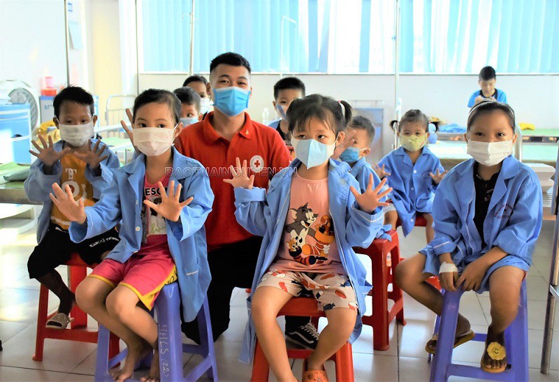 Ngọc và các em nhỏ đang điều trị tại Trung tâm Huyết học - Truyền máu, Bệnh viện Trung ương Thái Nguyên