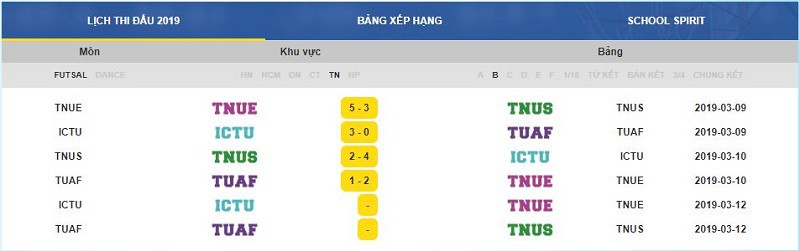 Lịch thi đấu bộ môn Futsal của Trường Đại học Khoa học tại VUG - 2019
