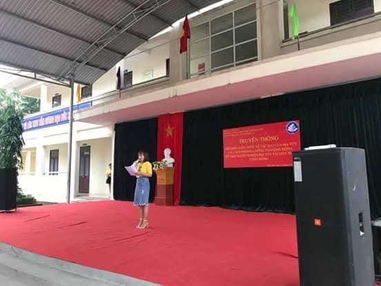 Ảnh 2: Tổ chức truyền thông tại trường Tiểu học và THCS Phúc Hà trong thực tập CTXH nhóm