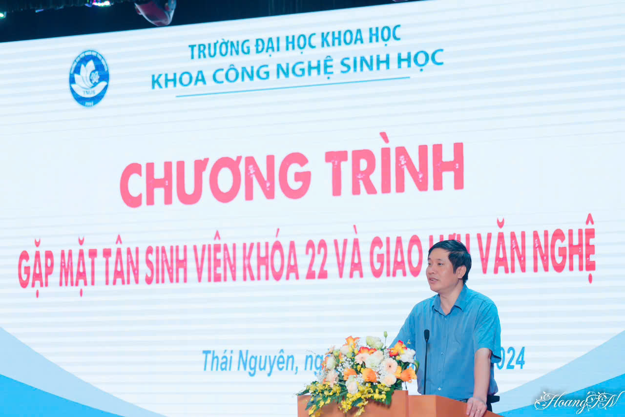 Mở đầu chương trình, đại diện lãnh đạo Khoa Công nghệ Sinh học, PGS.TS. Nguyễn Thị Hải Yến - Phó Trưởng khoa, đã có bài phát biểu chào mừng Tân sinh viên khoá 22. Cô đã chia sẻ các thông tin về chương trình đào tạo của Khoa, động viên khích lệ các em Tân sinh viên cố gắng học tập trong 4 năm học tập tại Trường. Cô nhấn mạnh về chương trình học song bằng: Để đạt được những kết quả đáp ứng với yêu cầu của hệ đào tạo song bằng giữa Trường Đại học Khoa học và Trường Đại học Y - Dược - ĐH Thái Nguyên, các bạn cần cố gắng tập trung học tập ngay từ khi mới vào Trường.