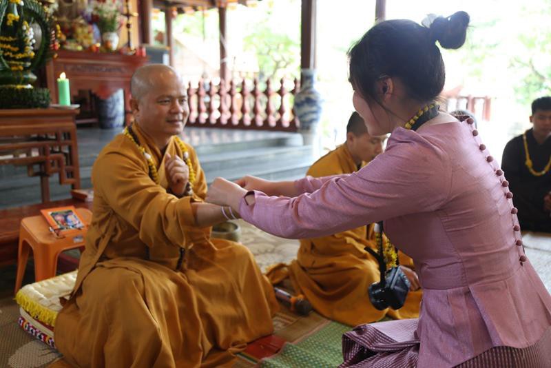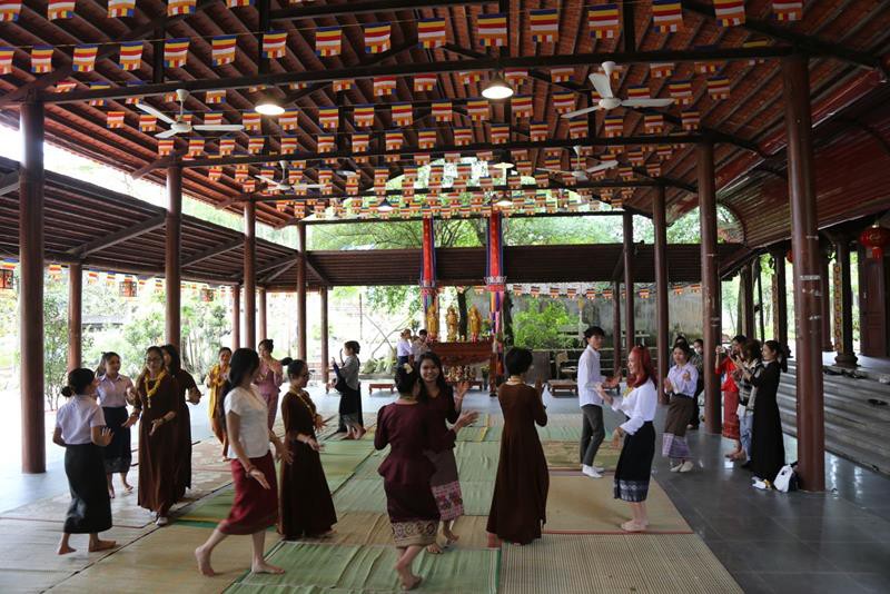 Sau đó, các LHS Lào đã có cơ hội giới thiệu với nhà chùa về nét đẹp văn hóa của tết Lào. Các bạn sinh viên đã thực hiện các nghi thức cầu chúc may mắn, an lành và hạnh phúc cho trụ trì và các tăng ni, phật tử chùa Hộ Lệnh như buộc chỉ cổ tay, té nước thơm. Đặc biệt, các điệu múa truyền thống và điệu múa Lăm-vông duyên dáng đã lôi cuốn và kết nối các LHS Lào và phật tử tại chùa. Các hoạt động diễn ra trong không khí trang nghiêm nhưng cũng rất sôi nổi, mang lại sự hào hứng cho mọi người.