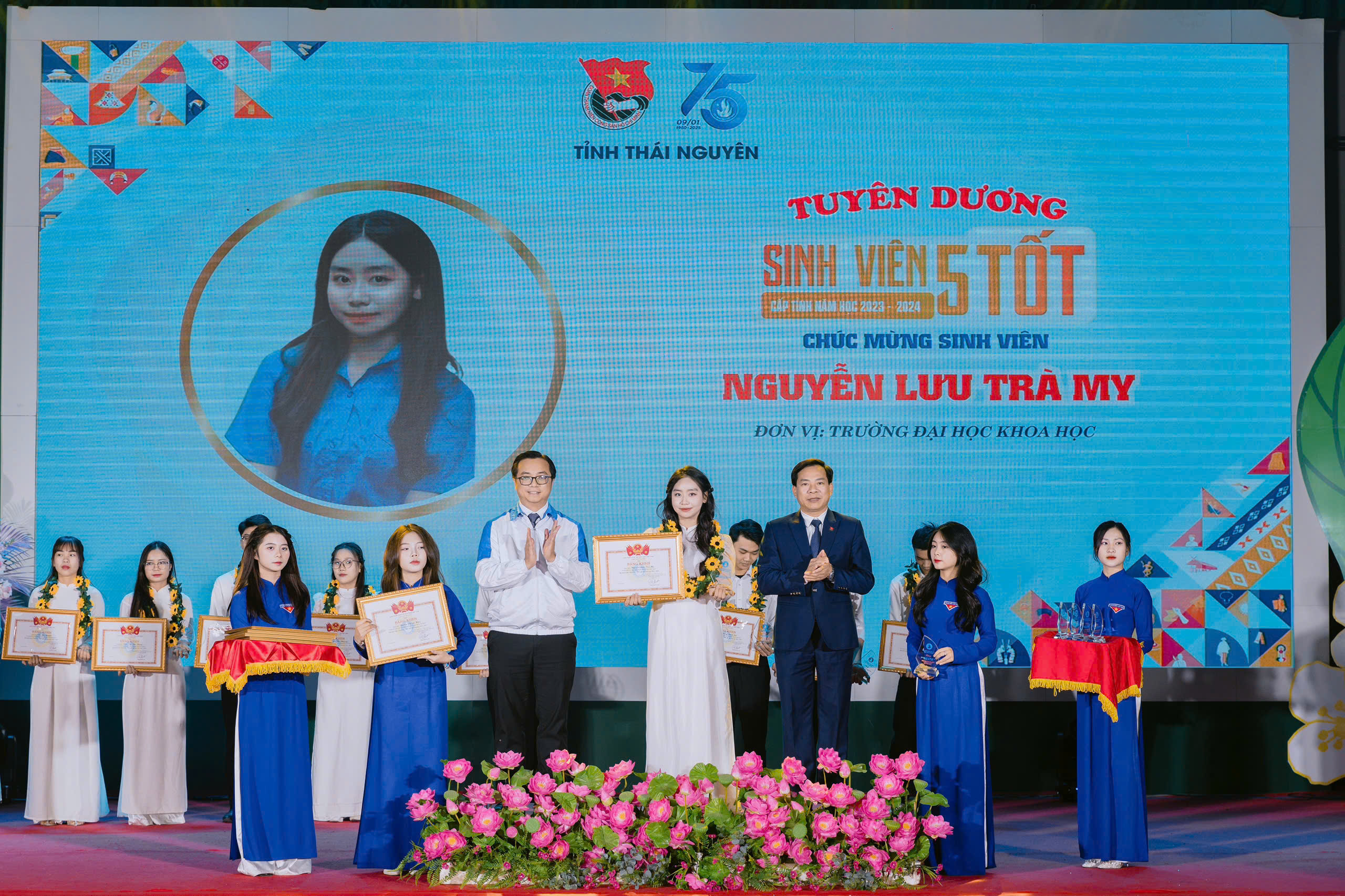 Ảnh 2: Trà My nhận danh hiệu "Thanh niên tiên tiến làm theo lời Bác" cấp Đại học Thái Nguyên năm 2024