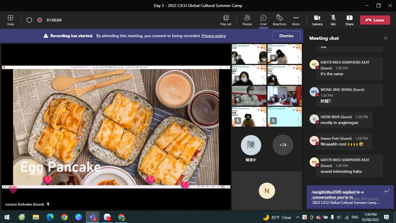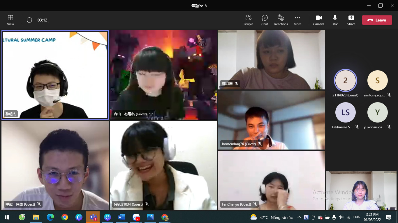 Từ ngày 01-04/8/2022, Trường Đại học Khoa học đã cử các bạn sinh viên tham gia chương trình trại hè quốc tế (dưới hình thức online) với Trường Đại học Trường Vinh, Đài Loan (2022 CJCU Global Cultural Summer Camp).