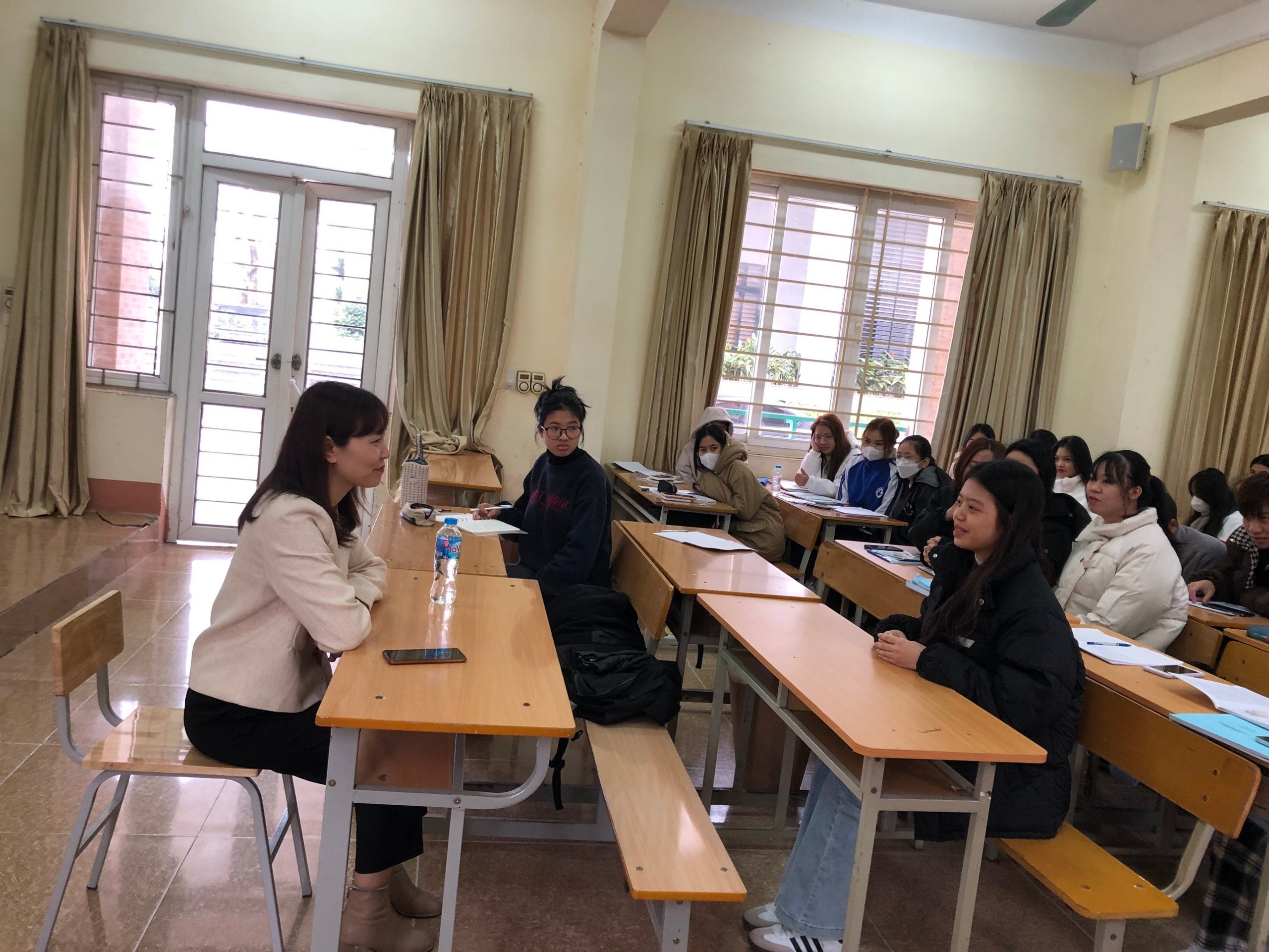 Nối tiếp chương trình học tập, hoạt động ngoại khóa, ngày 29/2, thầy và trò Bộ môn Hàn Quốc học được đón tiếp và giao lưu với Bà Nguyễn Thị Phượng - Giám đốc, Trung tâm Ngoại ngữ VK LINKS đến giảng dạy và chia sẻ kinh nghiệm Phiên dịch tiếng Hàn. Với nhiều năm kinh nghiệm dịch thuật cho các đoàn đại biểu cấp cao, MC song ngữ của nhiều chương trình quốc tế, sinh viên ngành Hàn Quốc học đã được lắng nghe nhiều chia sẻ hữu ích về phiên dịch, đặc biệt, sinh viên được thực hành phiên dịch Việt – Hàn, Hàn – Việt ngay cùng cô Phượng.