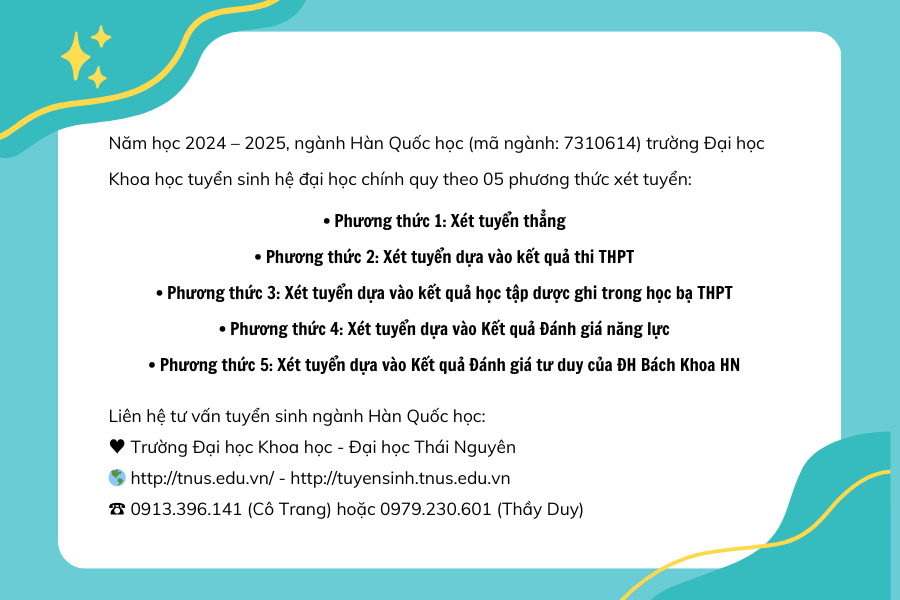 Phương thức để trở thành sinh viên ngành Hàn Quốc học - trường Đại học Khoa học – Đại học Thái Nguyên