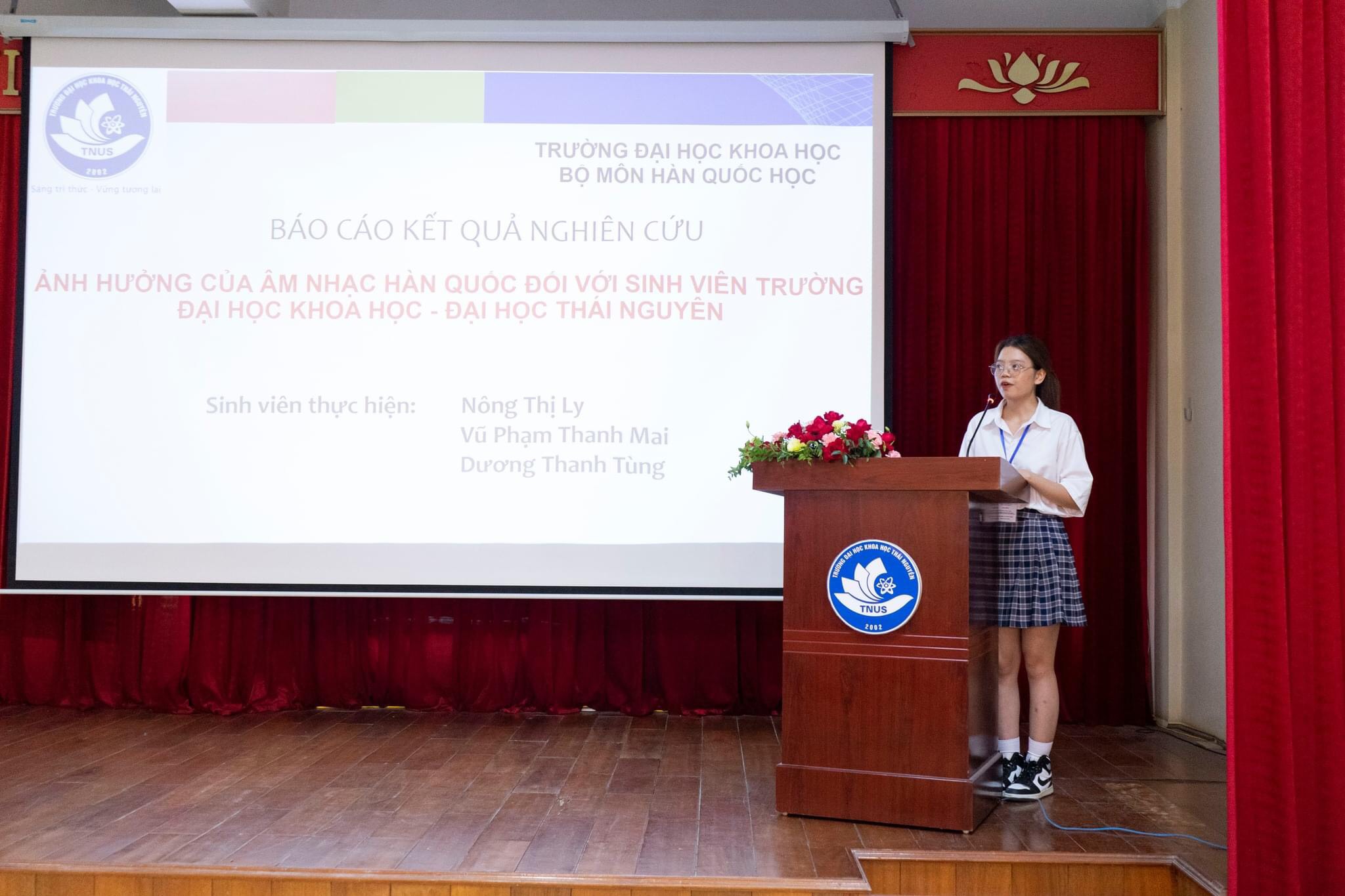 Nông Thị Ly, sinh viên năm thứ 3 tại Trường Đại học Khoa học, là một gương mặt nổi bật của ngành Hàn Quốc học. Từ một sinh viên còn khá nhút nhát khi mới lên thành phố học, Ly nay đã trở thành thành viên năng nổ trong các hoạt động phong trào của lớp, khoa và nhà trường. Đặc biệt, Ly không chỉ học tốt mà còn đạt được rất nhiều giải thưởng lớn nhỏ ngay từ khi còn là sinh viên năm nhất, như: Giải nhất cuộc thi " Người phụ nữ tôi yêu và khoảnh khắc tri ân" do bộ môn Hàn Quốc học tổ chức; giải thưởng "Thanh niên tiên tiến là theo lời Bác năm học 2022 - 2023"; sinh viên có thành tích xuất sắc trong hoạt động nghiên cứu khoa học cấp bộ môn năm học 2023 – 2024 với sản phẩm 01 bài báo đăng trên tạp chí Khoa học và Công nghệ Đại học Thái Nguyên. Vừa qua, Ly đã đạt giải nhất trong cuộc thi nói tiếng Hàn "세종한국어 말하기 대회" do Học viện King Sejong tổ chức tại Thái Nguyên. Giải thưởng này sẽ mang lại cho Ly cơ hội được tham dự cuộc thi nói tiếng Hàn tại Hàn Quốc và trải nghiệm văn hóa Hàn Quốc trong một tuần. Với những thành tích ấn tượng, Ly được đánh giá là một gương mặt đầy triển vọng của ngành Hàn Quốc học, Trường Đại học Khoa học. Hãy cùng trò chuyện với để cùng tìm hiểu thêm về hành trình học tập và phát triển của cô bạn này nhé!