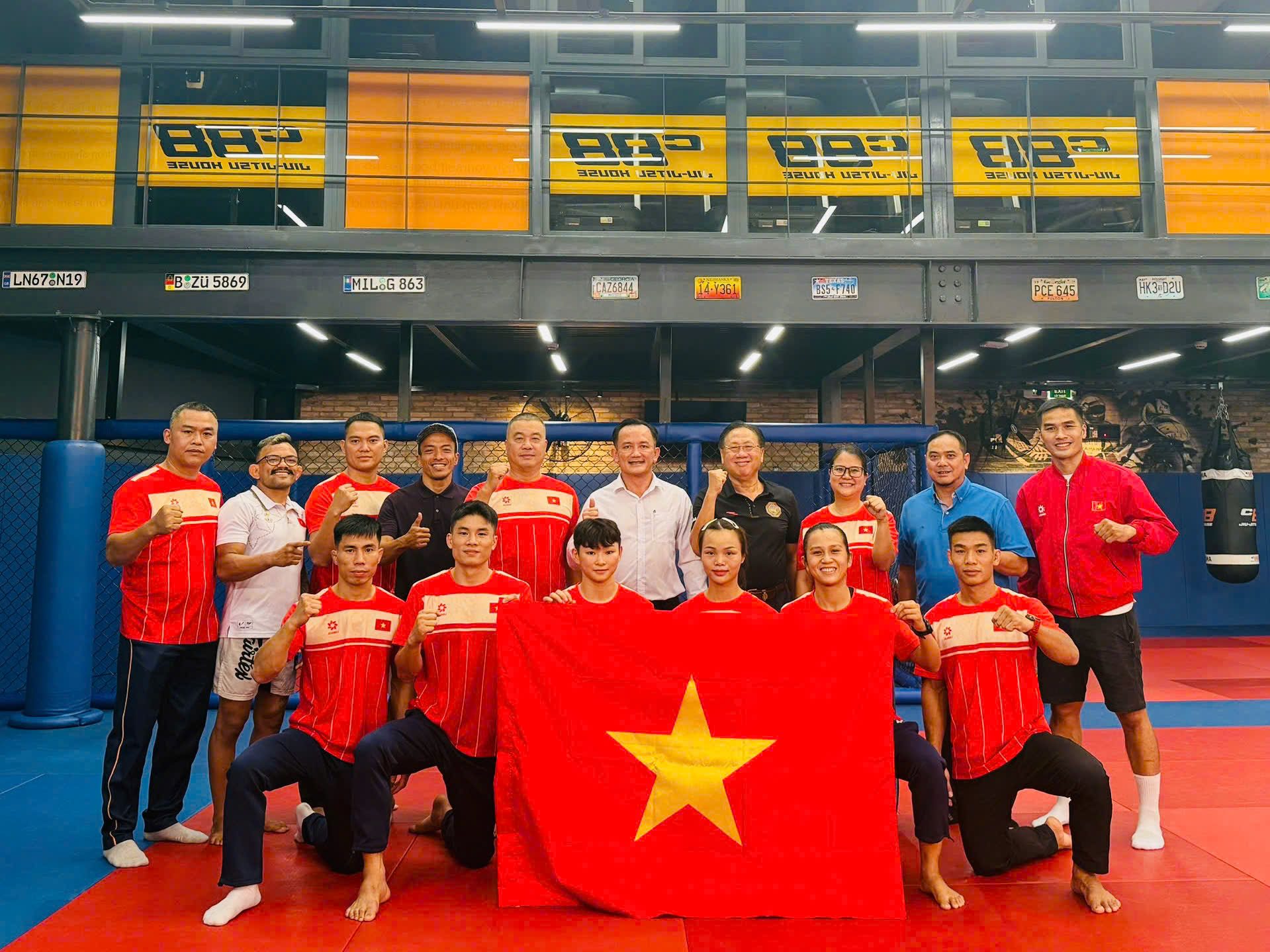 Nguyễn Vũ Quỳnh Hoa cùng đội tuyển MMA Việt Nam trước ngày ra quân